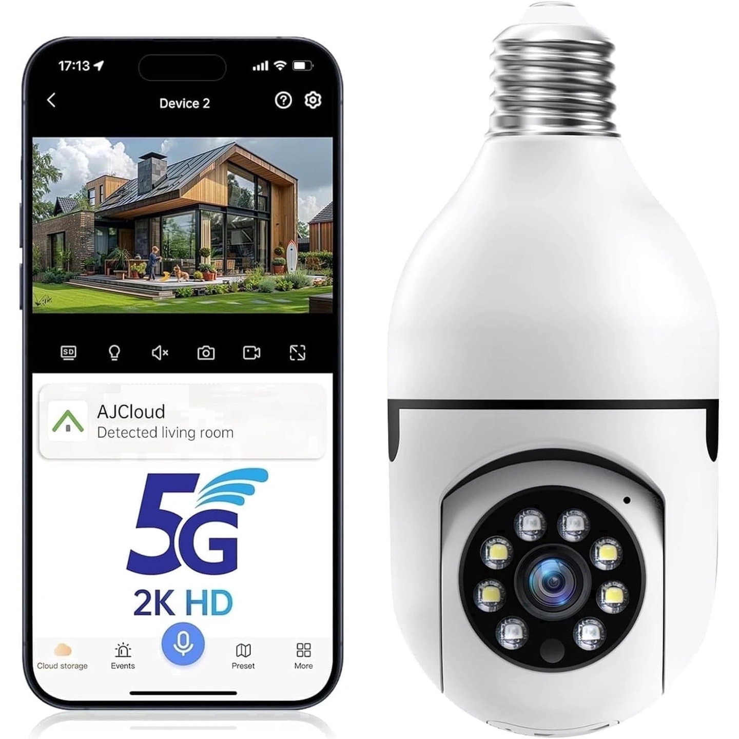 5G& 2.4GHz Wifi Light Bulb Security Camera, 2K HD Security Cam