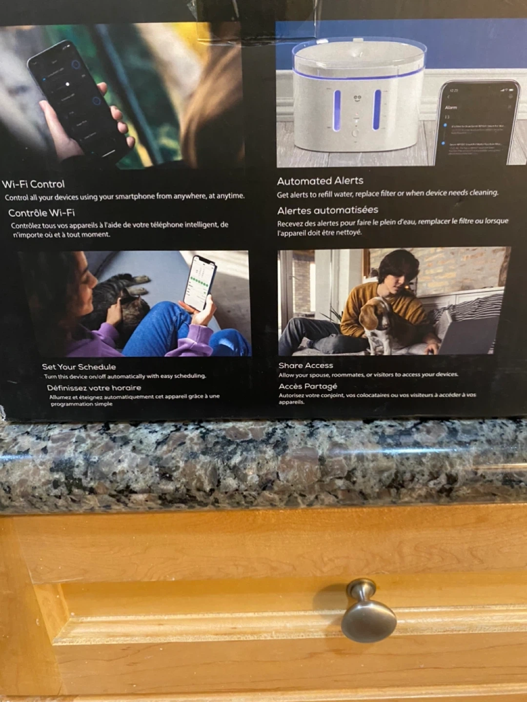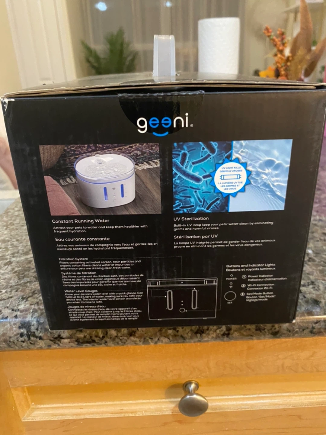 10Keep your furry friends hydrated with the Geeni PetConnect Fountain! This UV sterilized circulating water fountain ensures your pet always has access to clean and healthy water. It features Wi-Fi control, allowing you to manage the device from your smartphone, and automated alerts to remind you to refill the water or replace the filter. Share access with family or roommates for convenient pet care. The fountain is designed for constant running to encourage your pets to drink more frequently. Simple set up and installation!