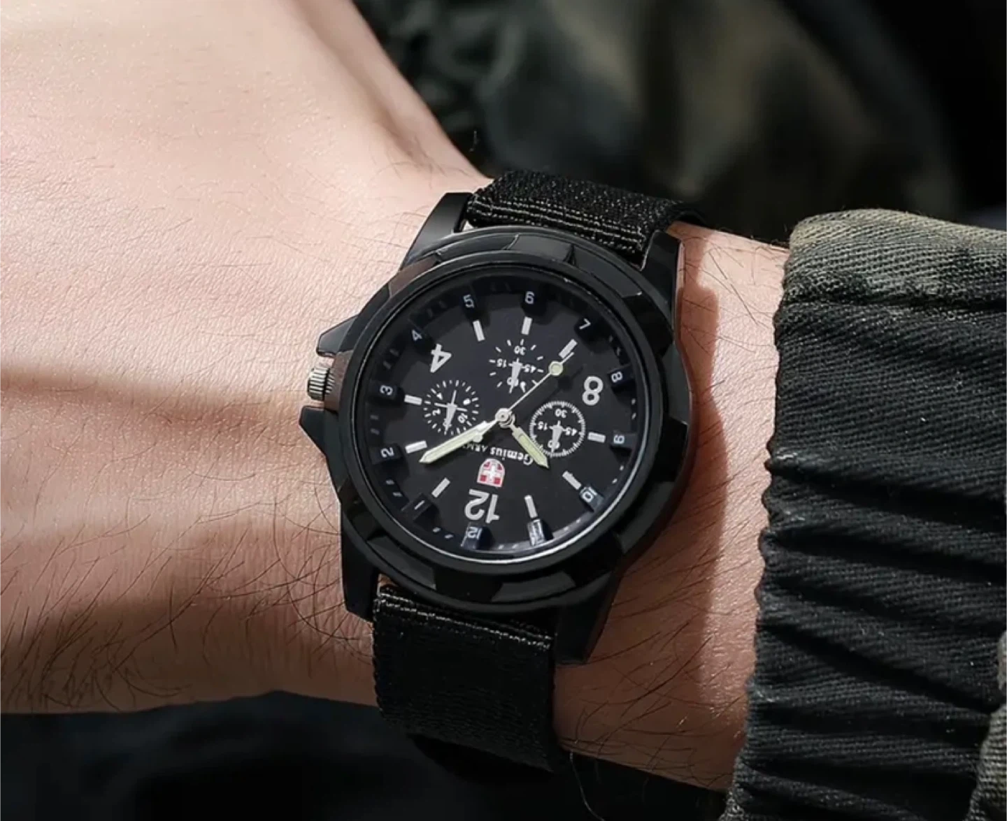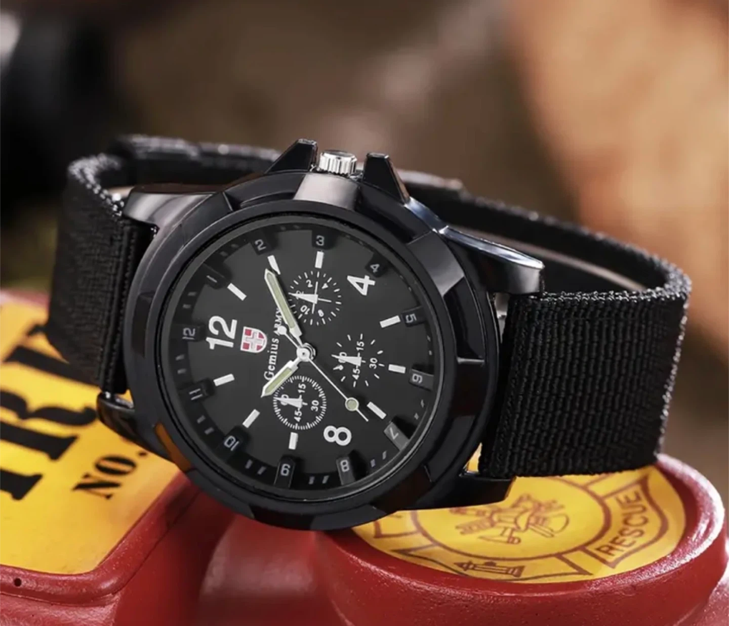 15Selling a Gemius Army watch in black! It's in great condition. The watch features a black dial with white numerals and a black band