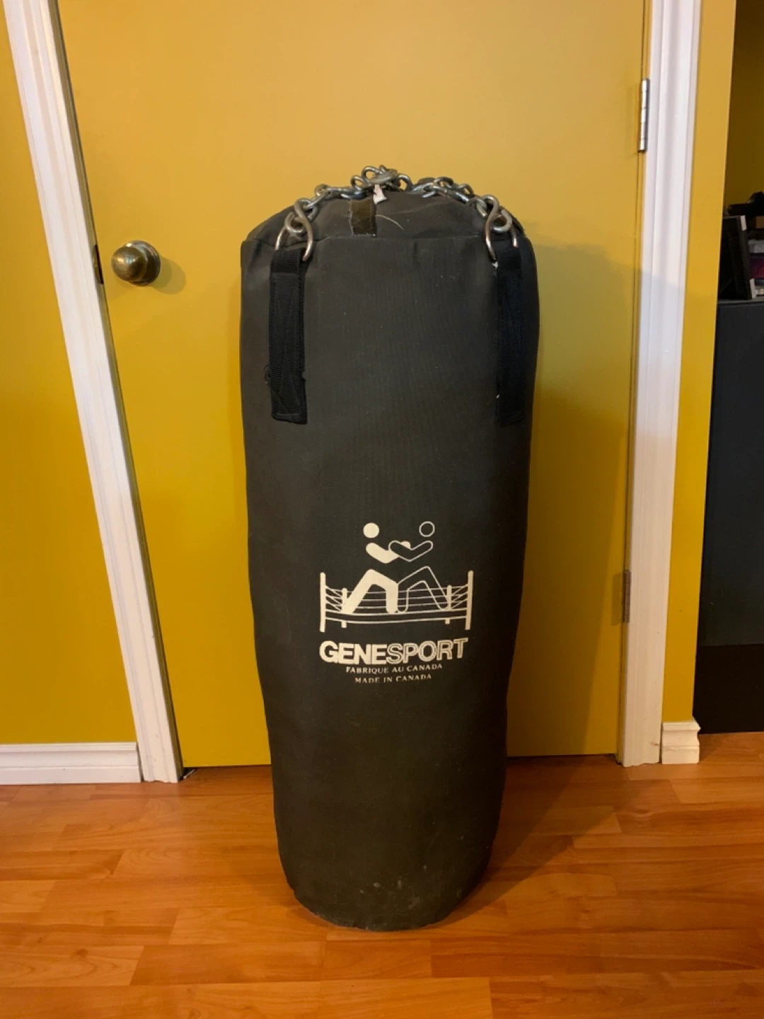 Selling a Genesport heavy punching bag, proudly made in Canada! It's in great shape and ready for a new home gym. Perfect for boxing, MMA, or just a great workout! Get ready to unleash your inner champion. This bag weighs 50lbs.