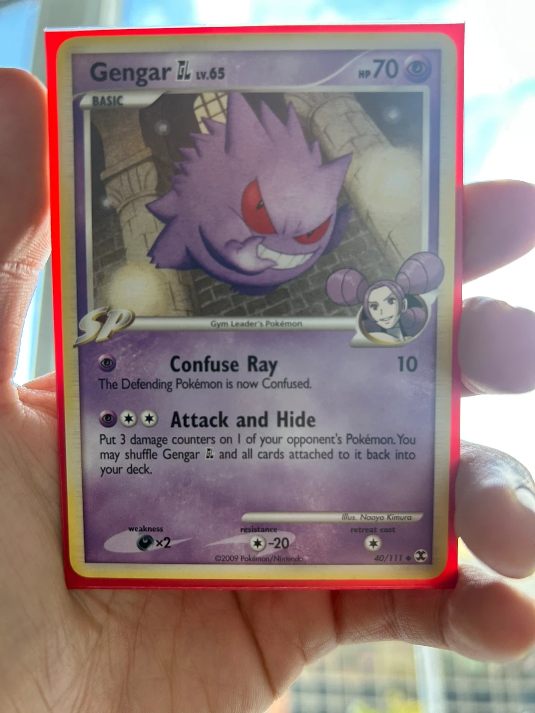 10Selling a Gengar GL Lv.65 Pokémon card! It has a Confuse Ray and Attack and Hide. The card is from the Gym Leader's Pokémon series and has a weakness of x2 and resistance of -20. It's in good condition and ready for a new home!