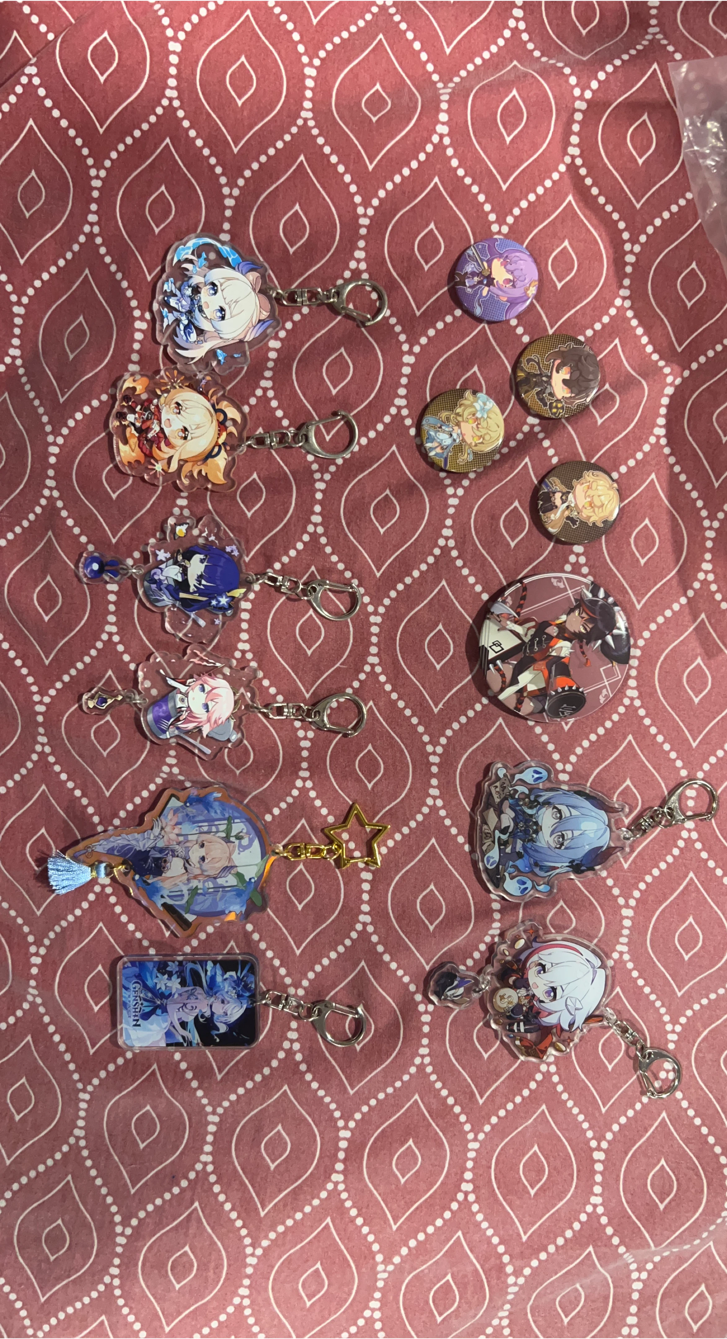 65Selling a collection of Genshin Impact and Honkai Star Rail keychains and pins! Some have minor scratches and some still have the protective film $5 per keychain $3 per pin