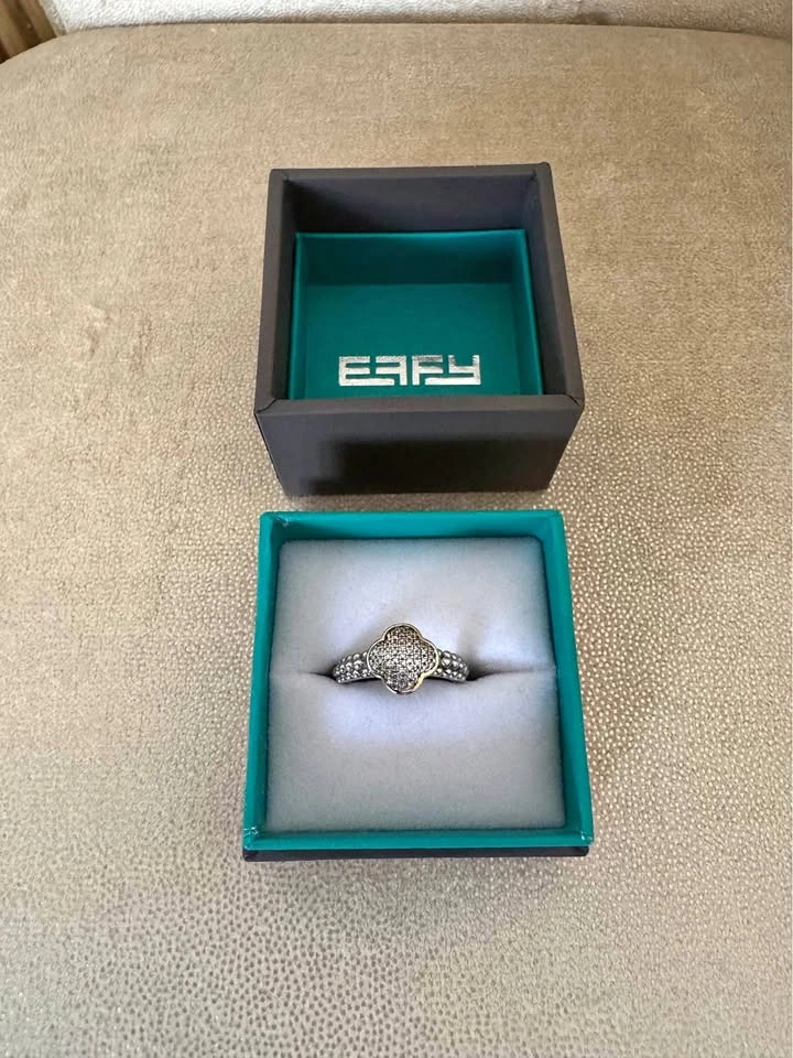 15Stunning Effy diamond ring in gently used condition. It has been worn a few times but is still in like-new shape with absolutely nothing wrong with it. The diamonds have beautiful sparkle and the setting is solid and high quality. β¨ Features: Authentic Effy piece Clean, bright diamonds No damage or defects Includes the original Effy box Great for everyday wear or as a special gift. Let me know if you're interested!