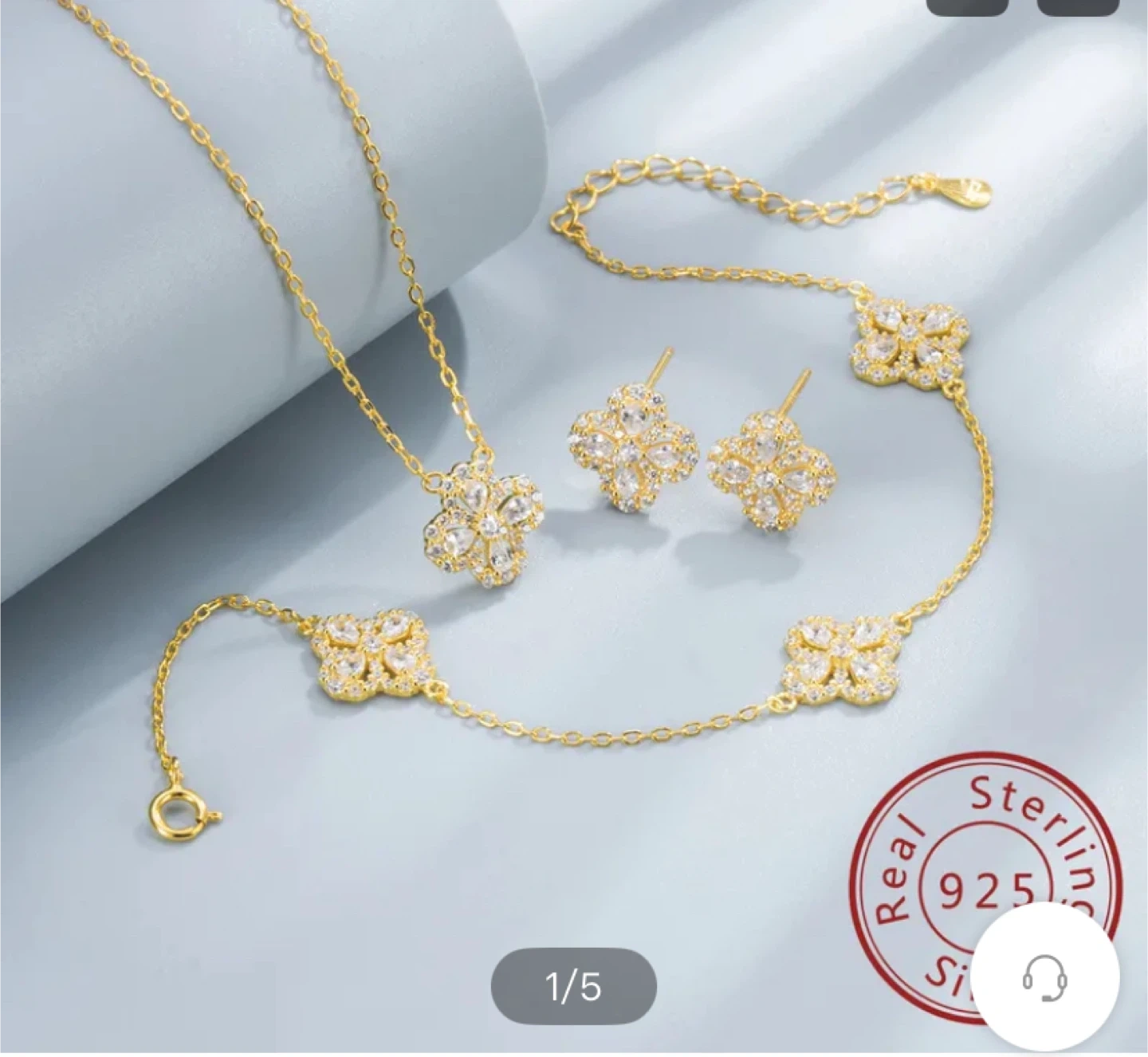 Selling a beautiful gold plated clover jewelry set! This includes a necklace, bracelet, and a pair of earrings. The set features a delicate clover design, perfect for adding a touch of elegance to any outfit