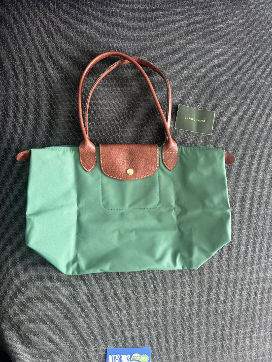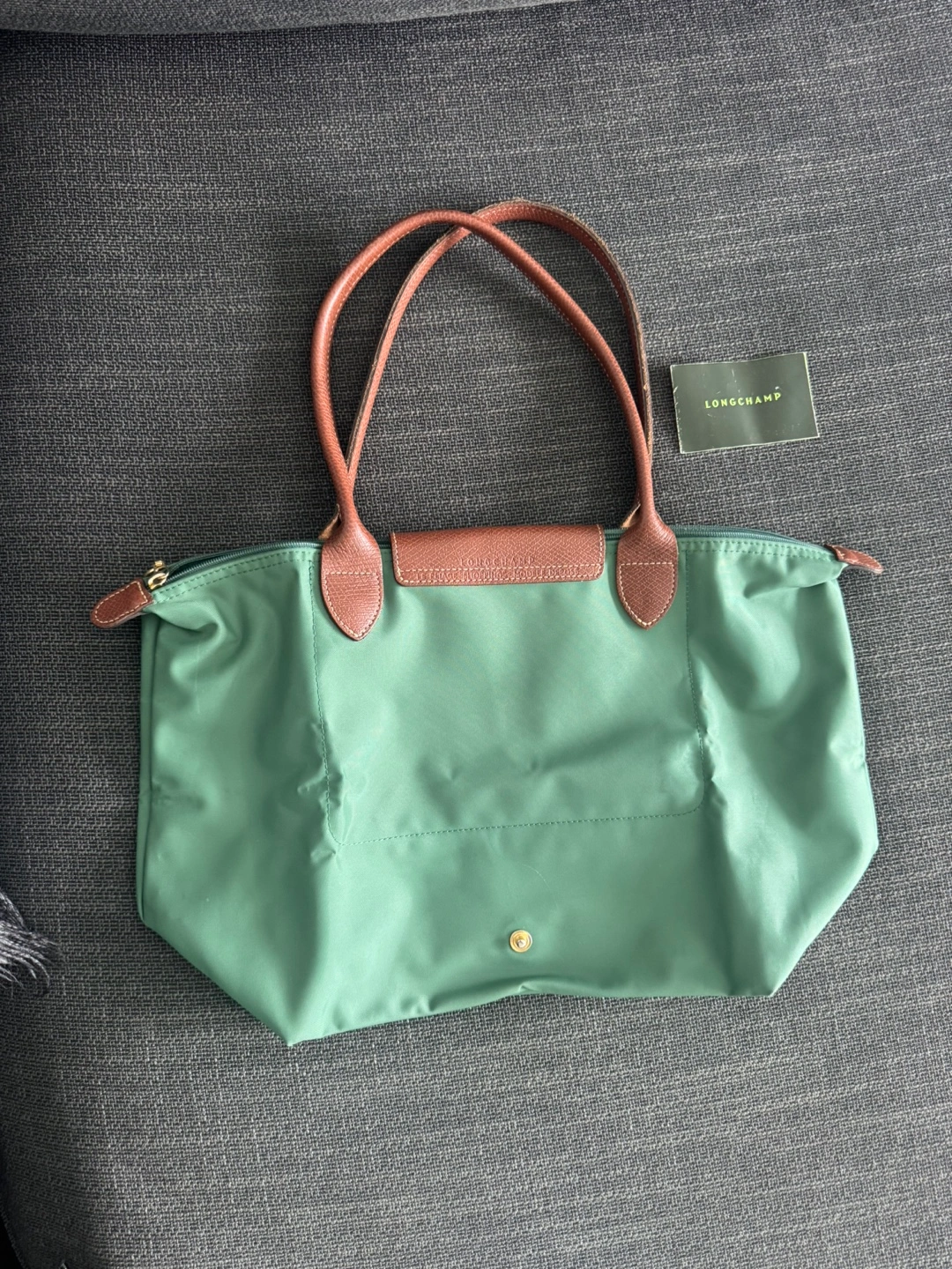 13Dimensions : 30 cm (L - measured at the base of the bag) x 28 cm (H) x 20 cm (W) Capacity : Can carry a laptop Material : Polyamide fabric with a minimum of 70% recycled fibers, with interior coating Metallic Hardware : Gold button and dark silver zipper Trimming : Russian leather (cowhide) Weight : 240 g Closing : Zipped and snap closure EXTERIOR DETAILS Handle Height : 12 cm / 4.7 in INTERIOR DETAILS Flat pocket : 2 Lining : Unlined Coating : Nylon