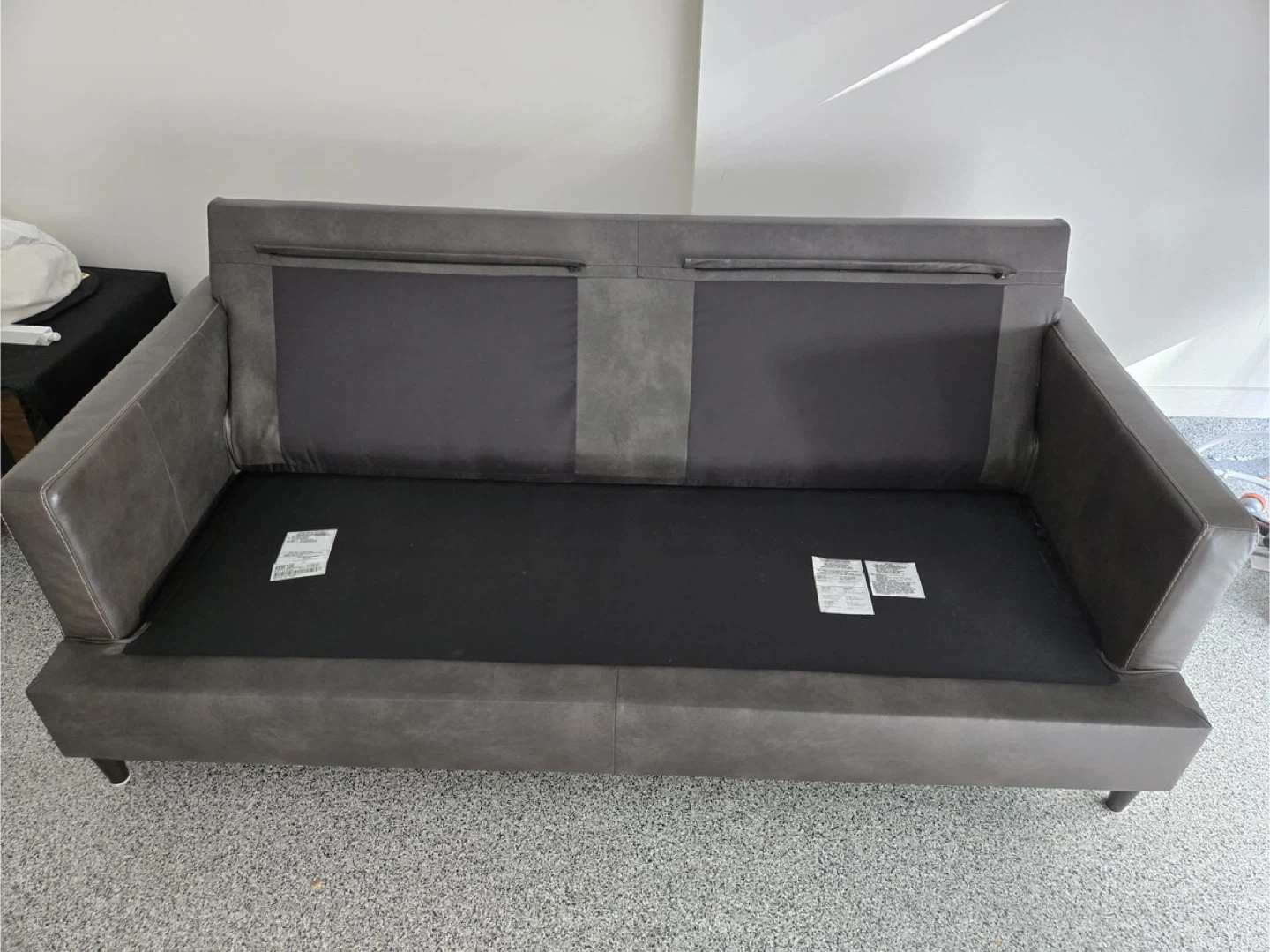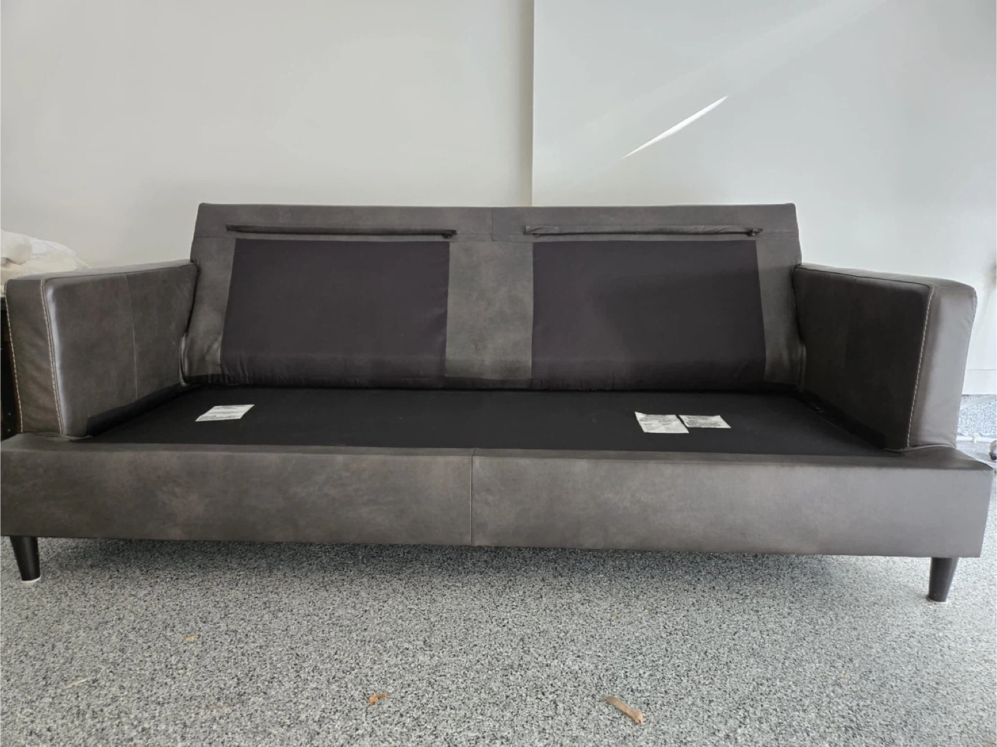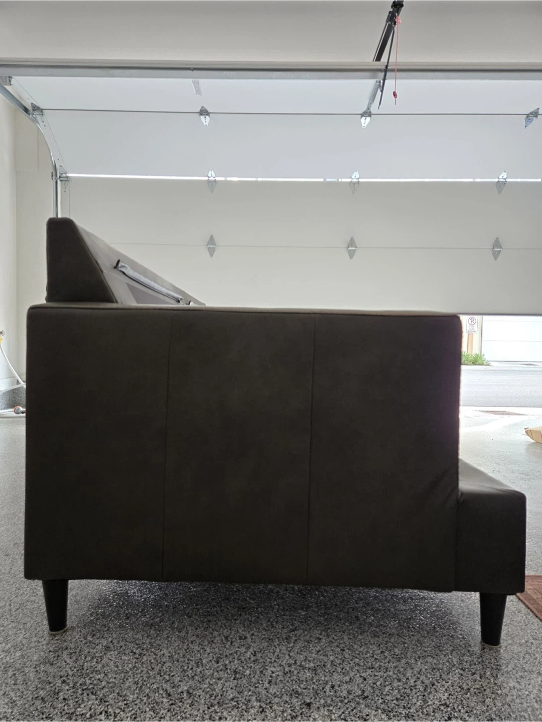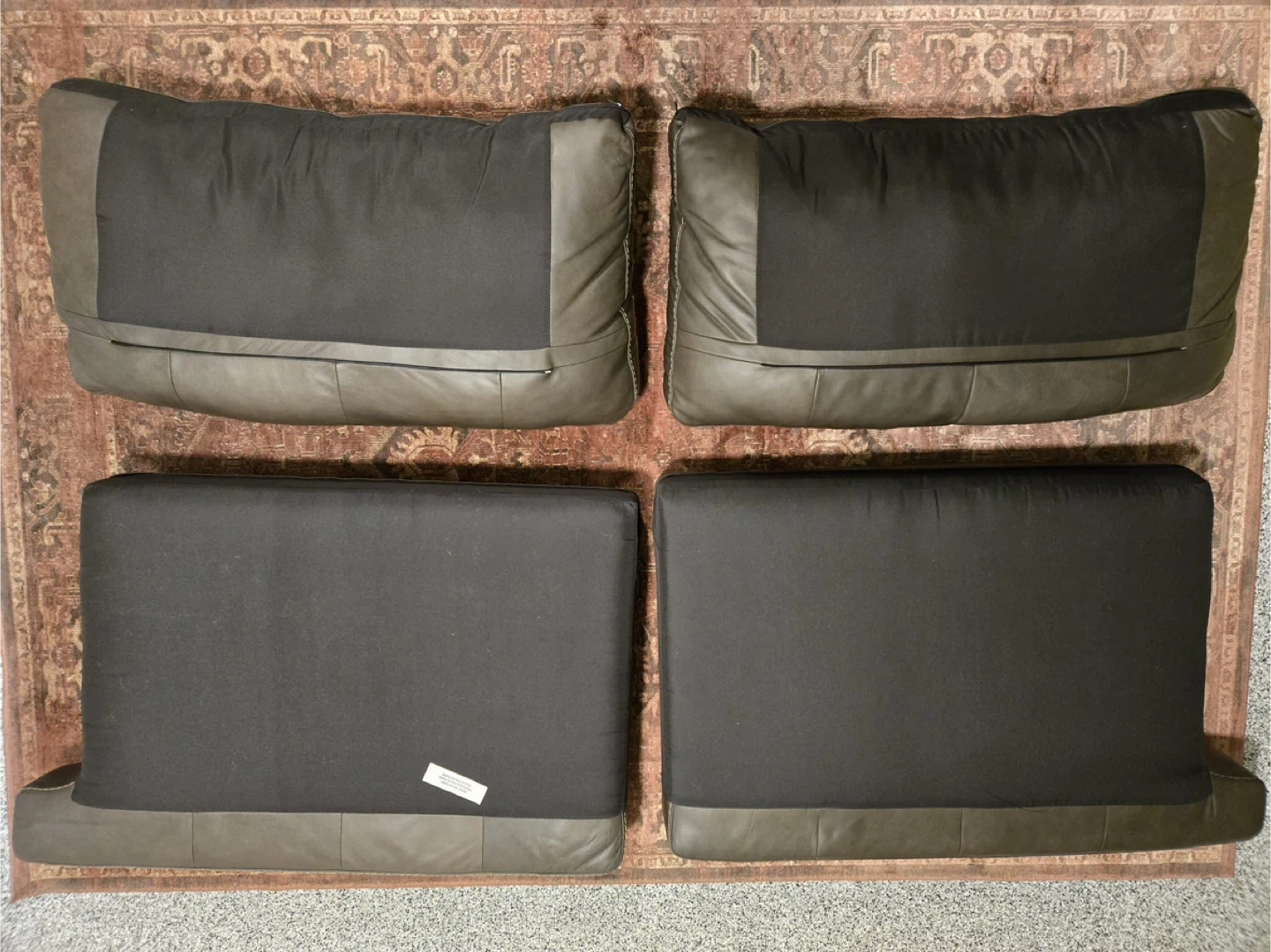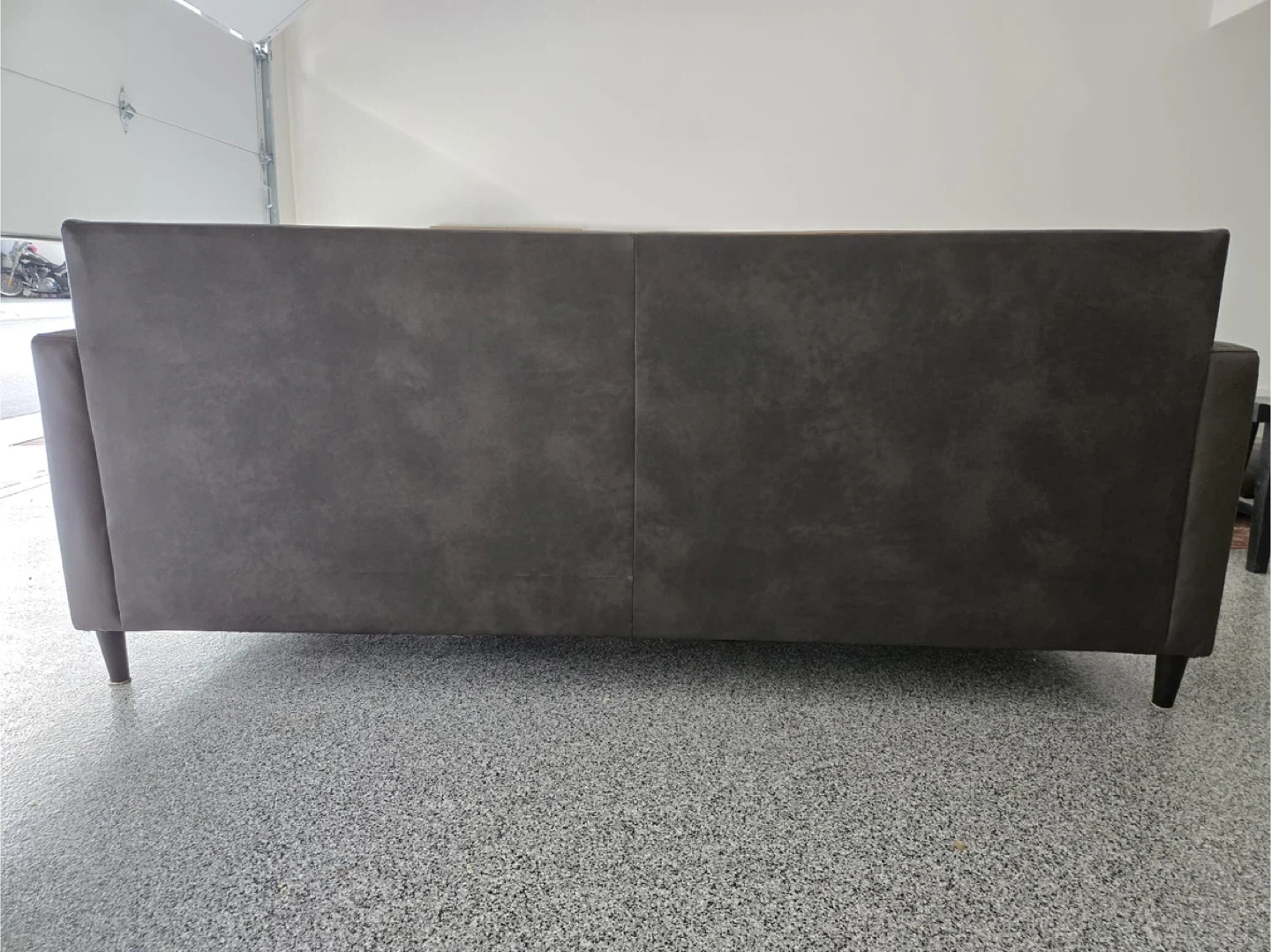 55**Carter Genuine Leather Sofa β Ash Grey (Wanek Furniture)** Beautiful leather sofa in ash grey. Made by **Wanek Furniture Company Ltd.** **Details:** * Genuine leather on main seating areas * Durable PVC and polyester on sides and back * Comfortable foam and fiber cushions (firm but cozy) * Neutral modern style that fits almost any space * Model #4950138 / M.O. MXRTSHO Only genuine materials (leather, PVC, polyester, and foam) β verified by manufacturer tags. ποΈ **Condition:** Excellent π **Dimensions:** Inches D38 x H36 x W79 π Pickup only (Langley)