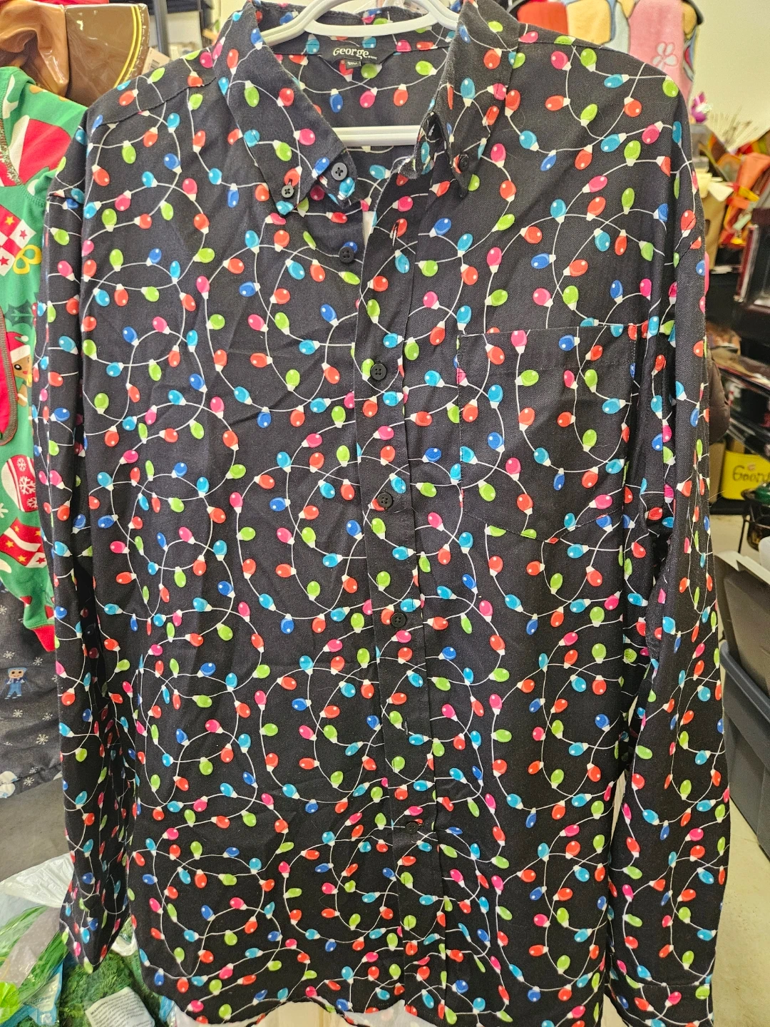 940Selling a George brand button-up shirt with a fun Christmas lights pattern! It's a size 2XL. Great for the holiday season! Sfpf Oshawa Harmony Road South at 401