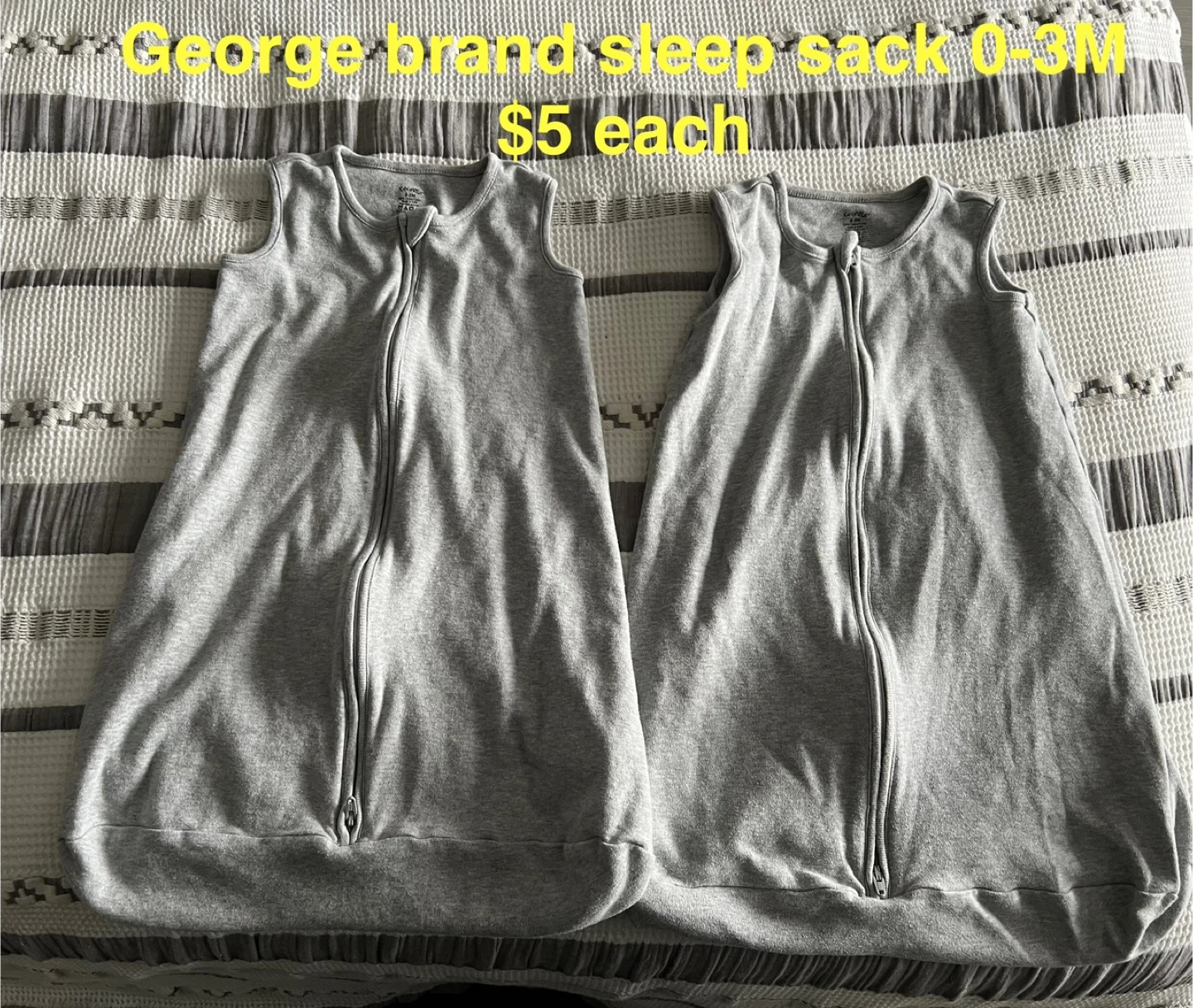 10Selling two George brand sleep sacks, sized 0-3 months! They're a soft grey colour and have a zipper down the front $5 each or take both for $8