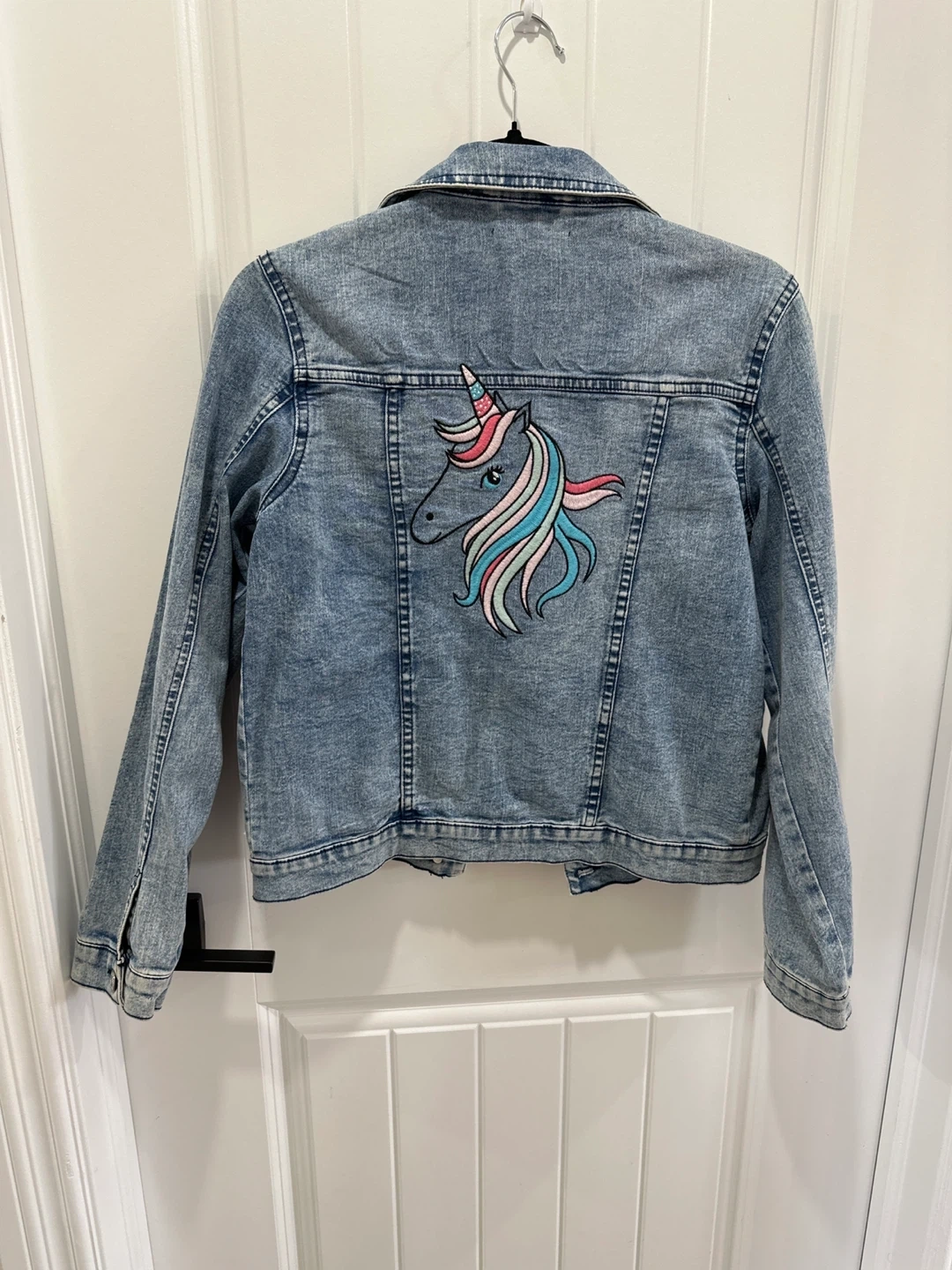 Cute George brand denim jacket with a unicorn design on the back. It's a size small and in great condition. Perfect for adding a bit of fun to any outfit!