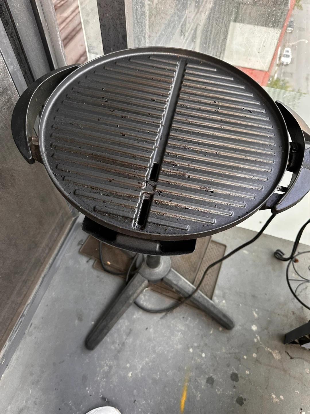 71Selling a used George Foreman grill. It has some signs of use, but it's still in good working condition. Perfect for condos!