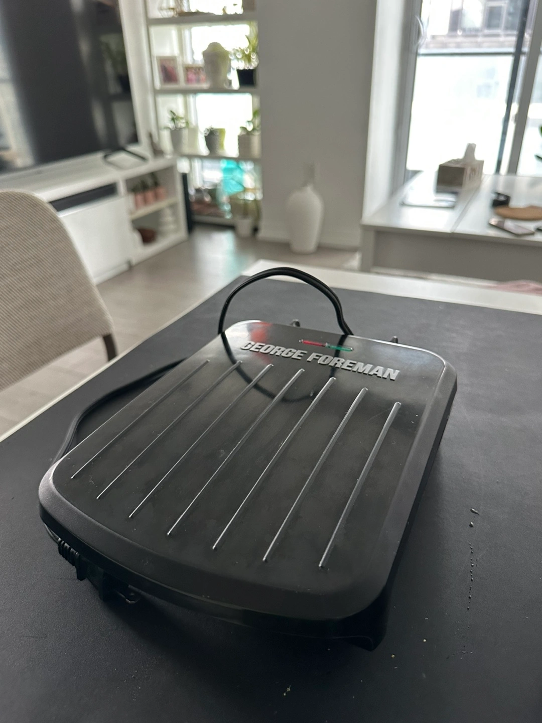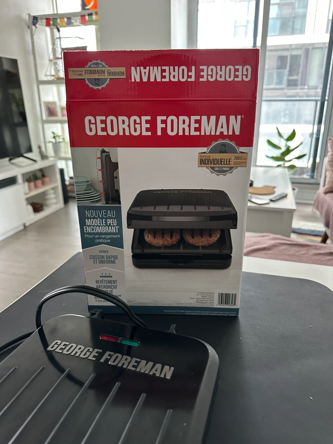 529Slightly used George Foreman indoor grill. Compact and easy to store. Great for small spaces. Non-stick grilling plates. Includes power cord. Selling for less than half, can be used in balcony as well