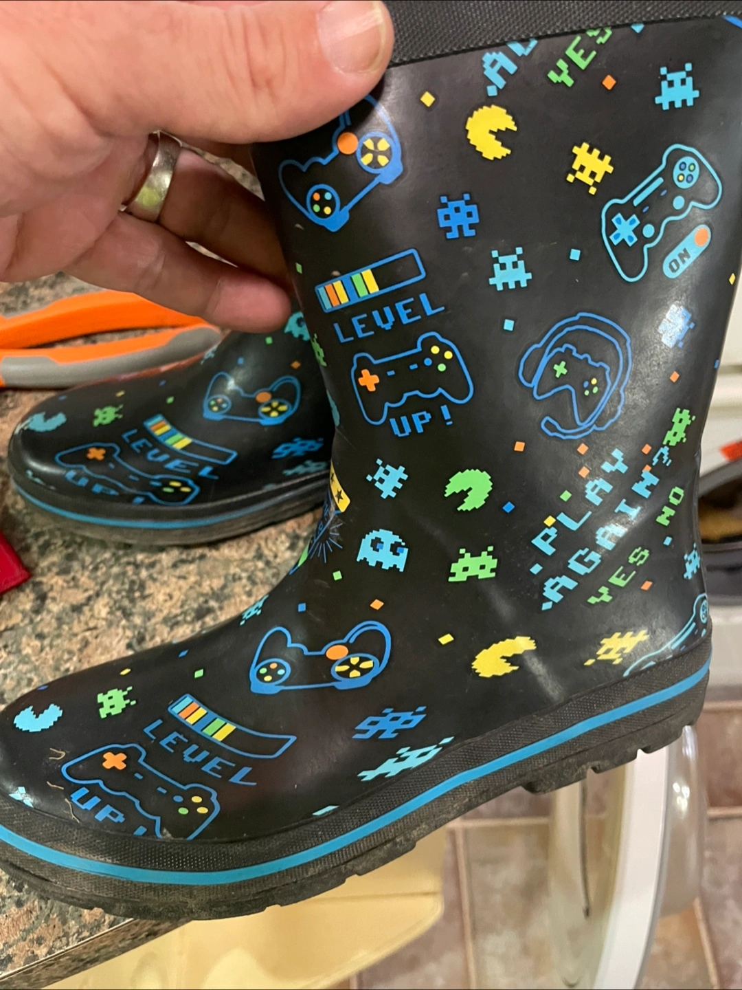 These George brand rain boots are perfect for your little gamer! They feature a fun video game design and are in good used condition. Size 3.