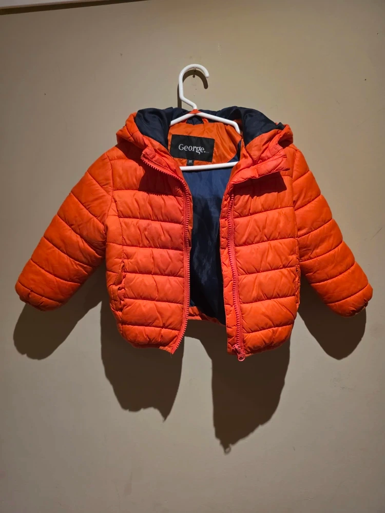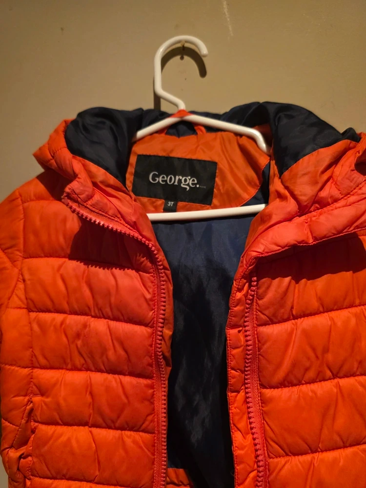 60Here's a cozy orange puffer jacket from George for your little one! It's a size 3T and perfect for keeping them warm during the cooler months