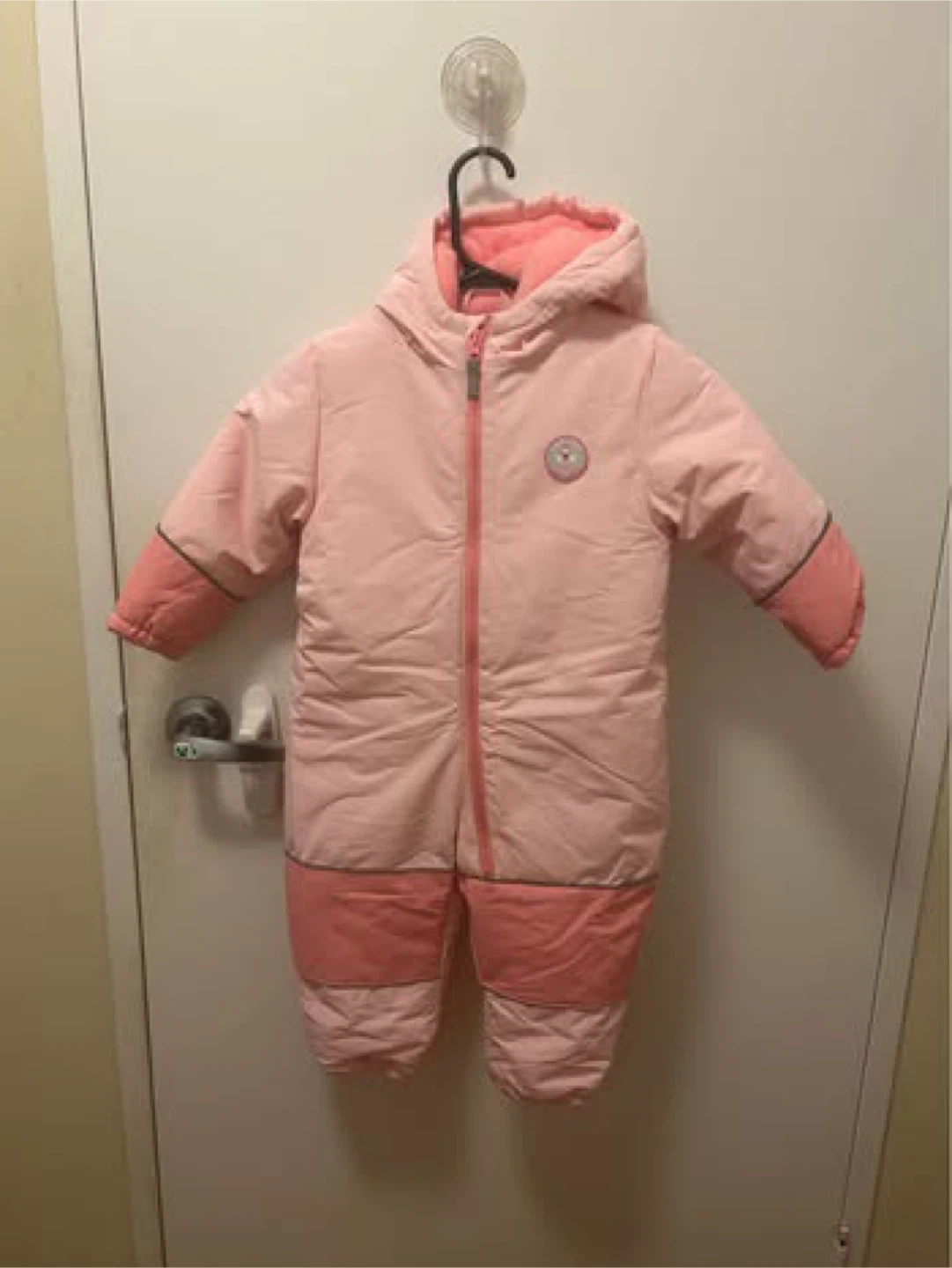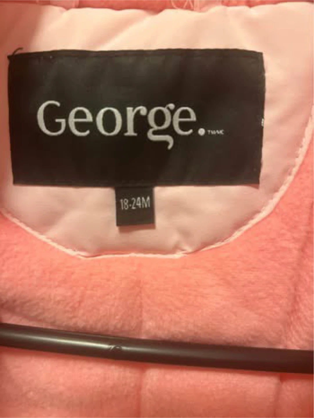 A super cute and cozy pink snowsuit from George! It's sized for 18-24 months, perfect for keeping your little one warm during the winter months. It's in great condition and ready for new adventures in the snow