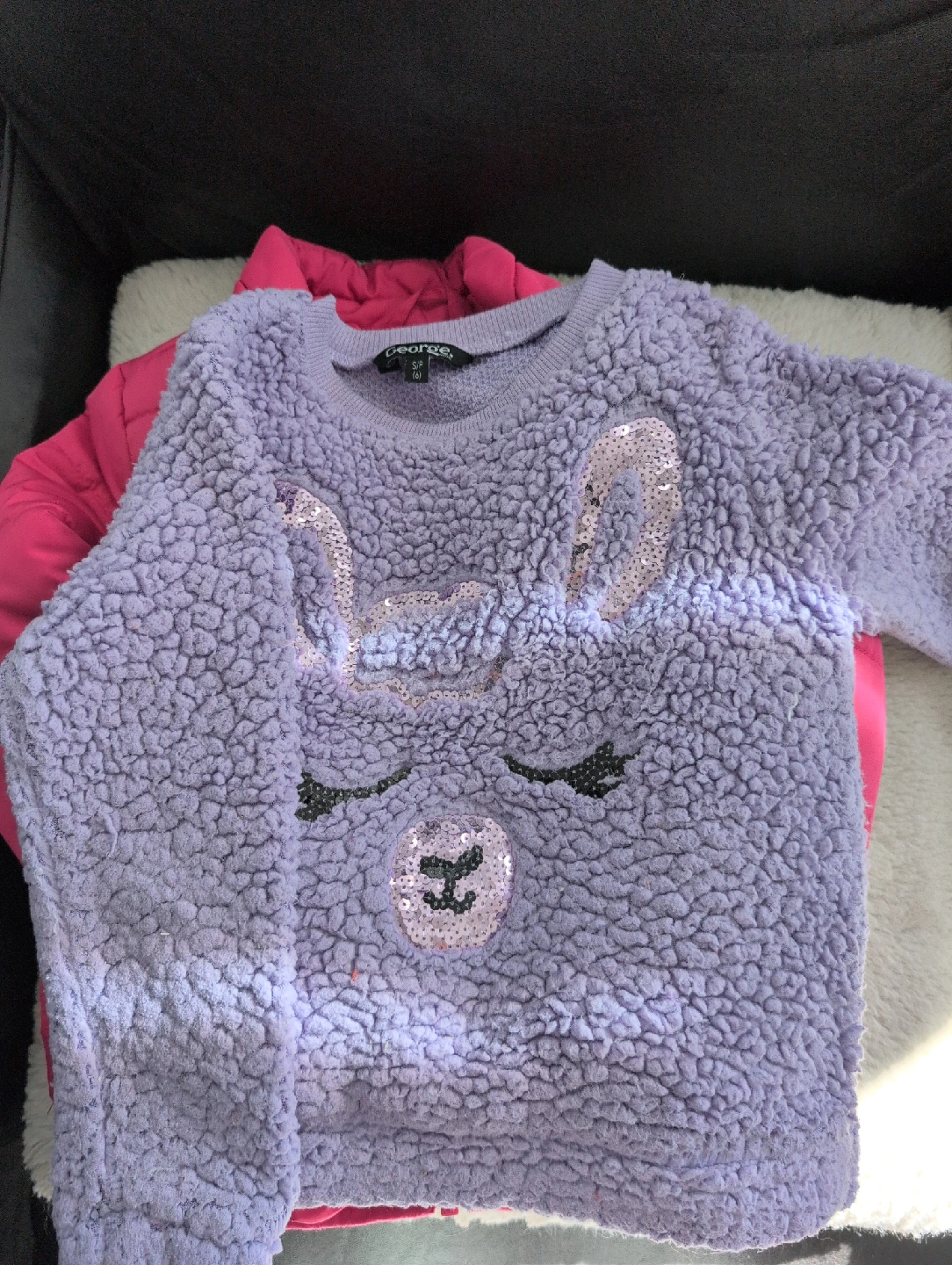 60A cozy purple sweater from George, size medium. It features an adorable llama design sweater and an additional turtle neck sweater. Perfect for keeping warm and looking cute!