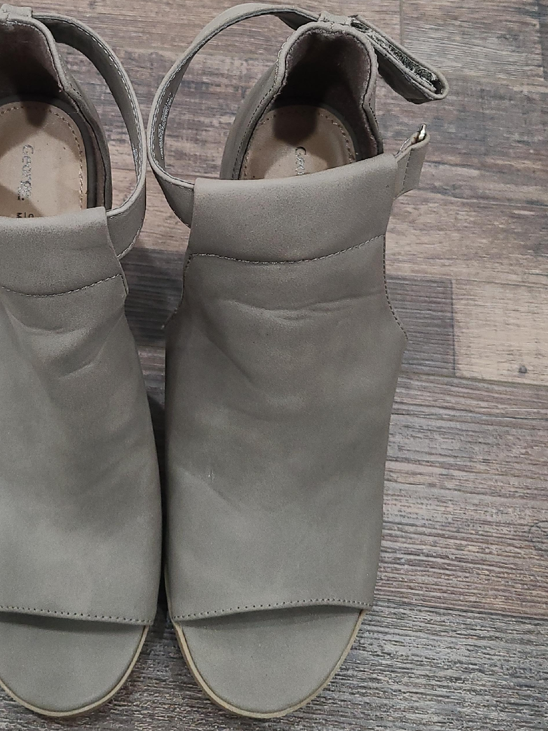 10Selling a pair of women's heeled sandals from George. They are a neutral grey colour. The shoes are in good condition and would be a great addition to your wardrobe!