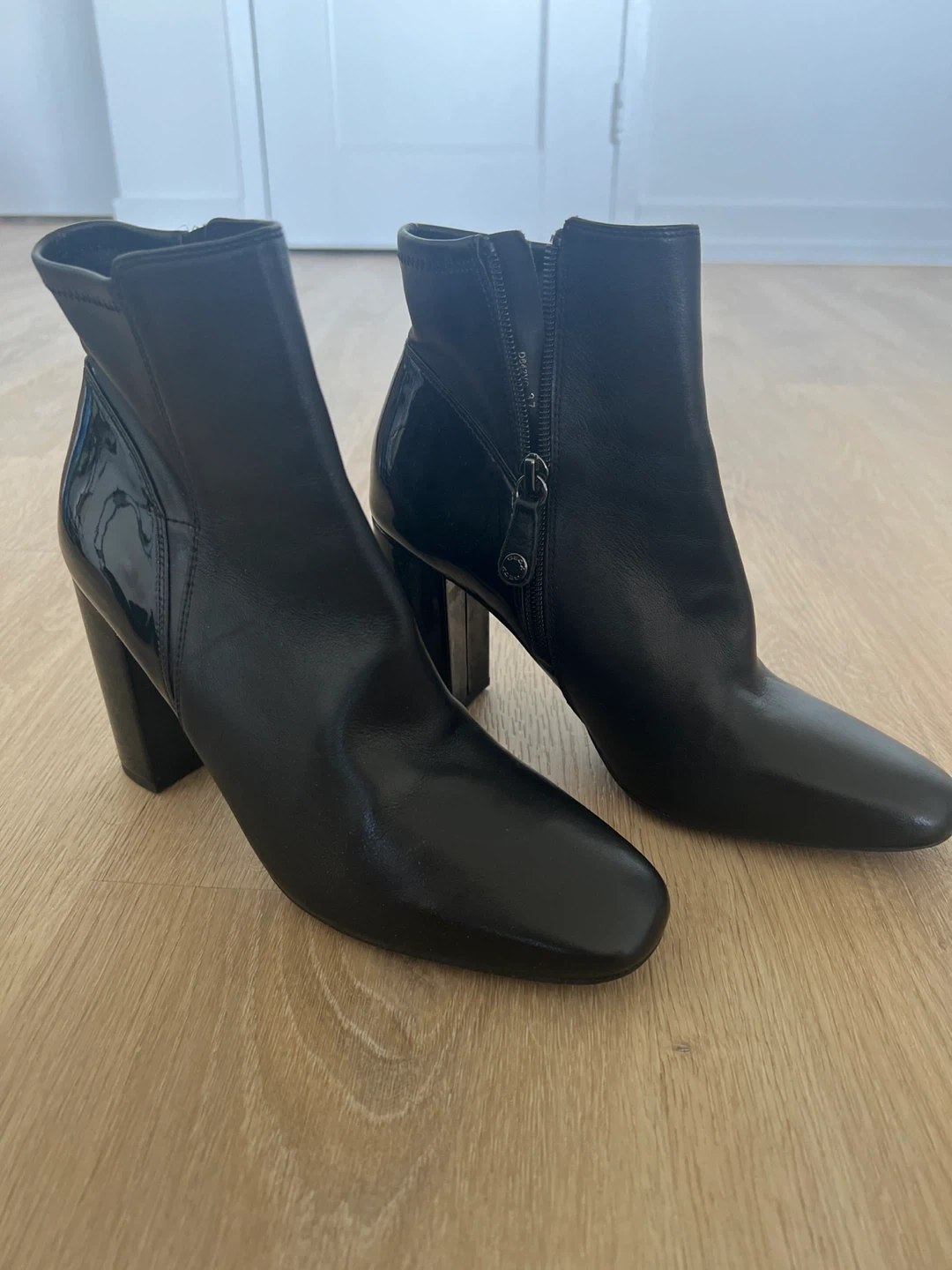77Selling a pair of Geox black leather heeled ankle boots. They have a block heel and a side zipper. The boots are in good condition and would be a great addition to your wardrobe!. Free delivery in Burlington.