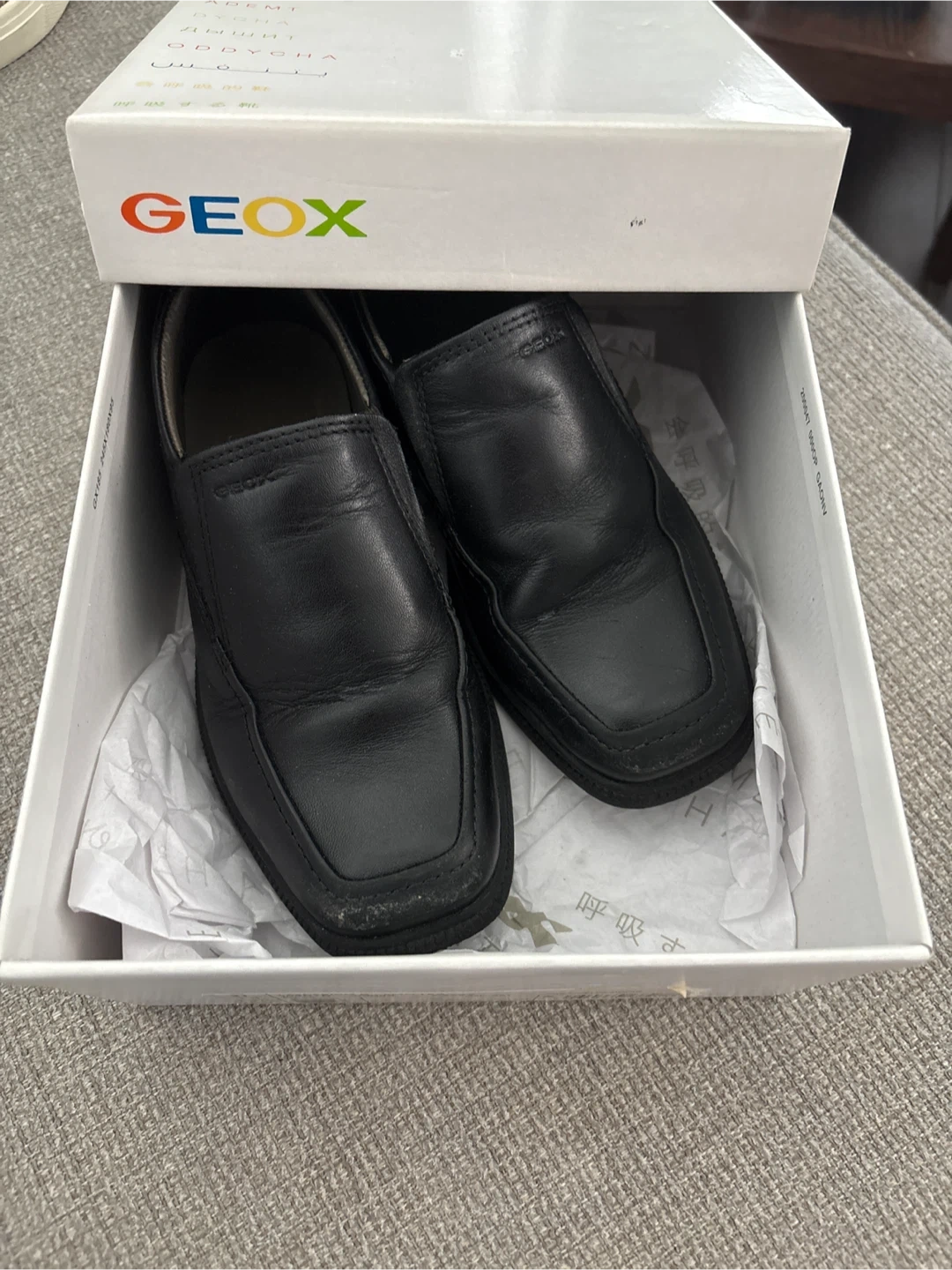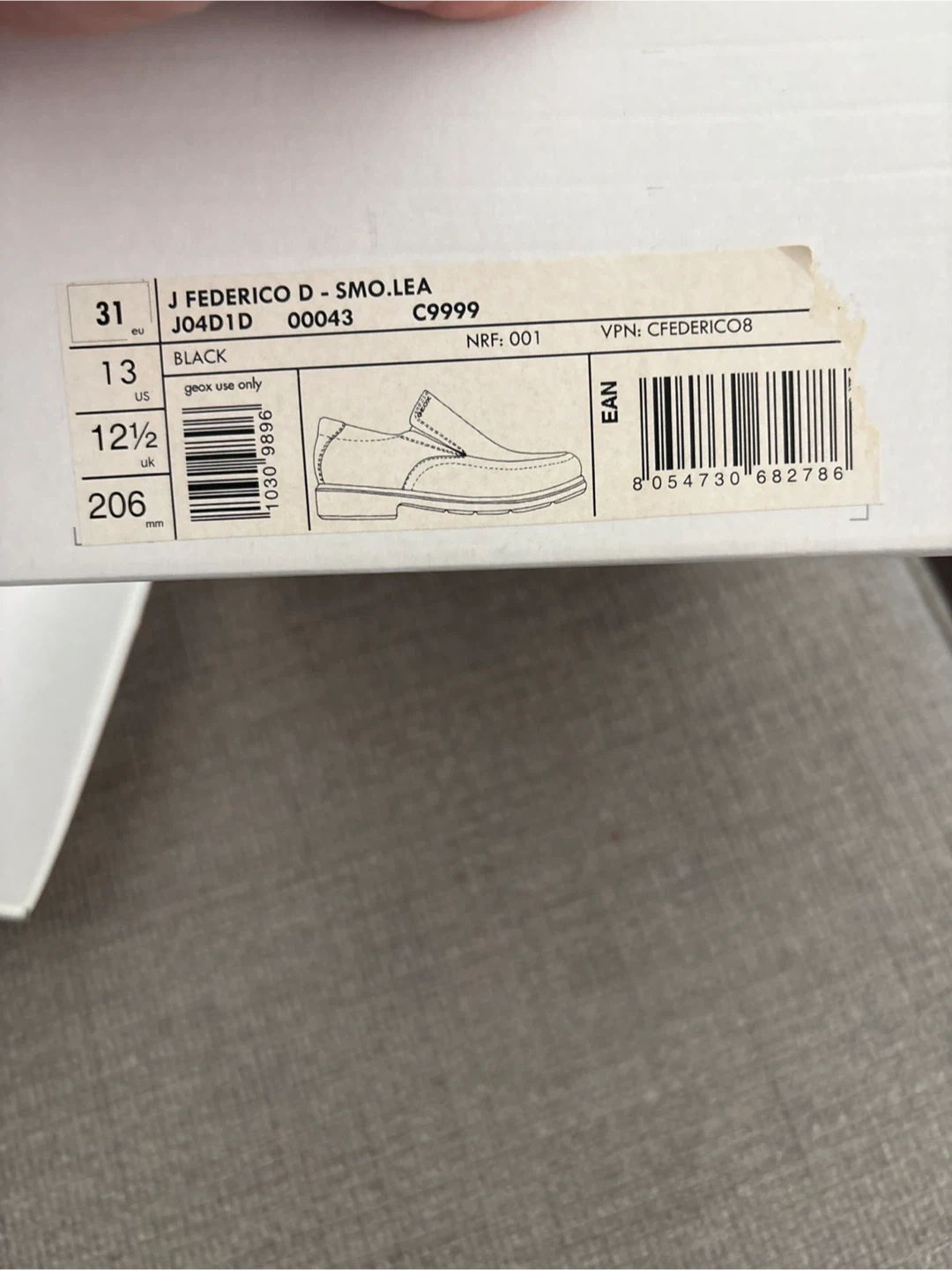 10Selling a pair of Geox J Federico D shoes in black leather. They are a size 12.5 US. Comes with the original box!