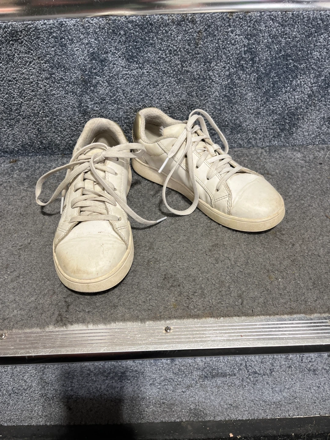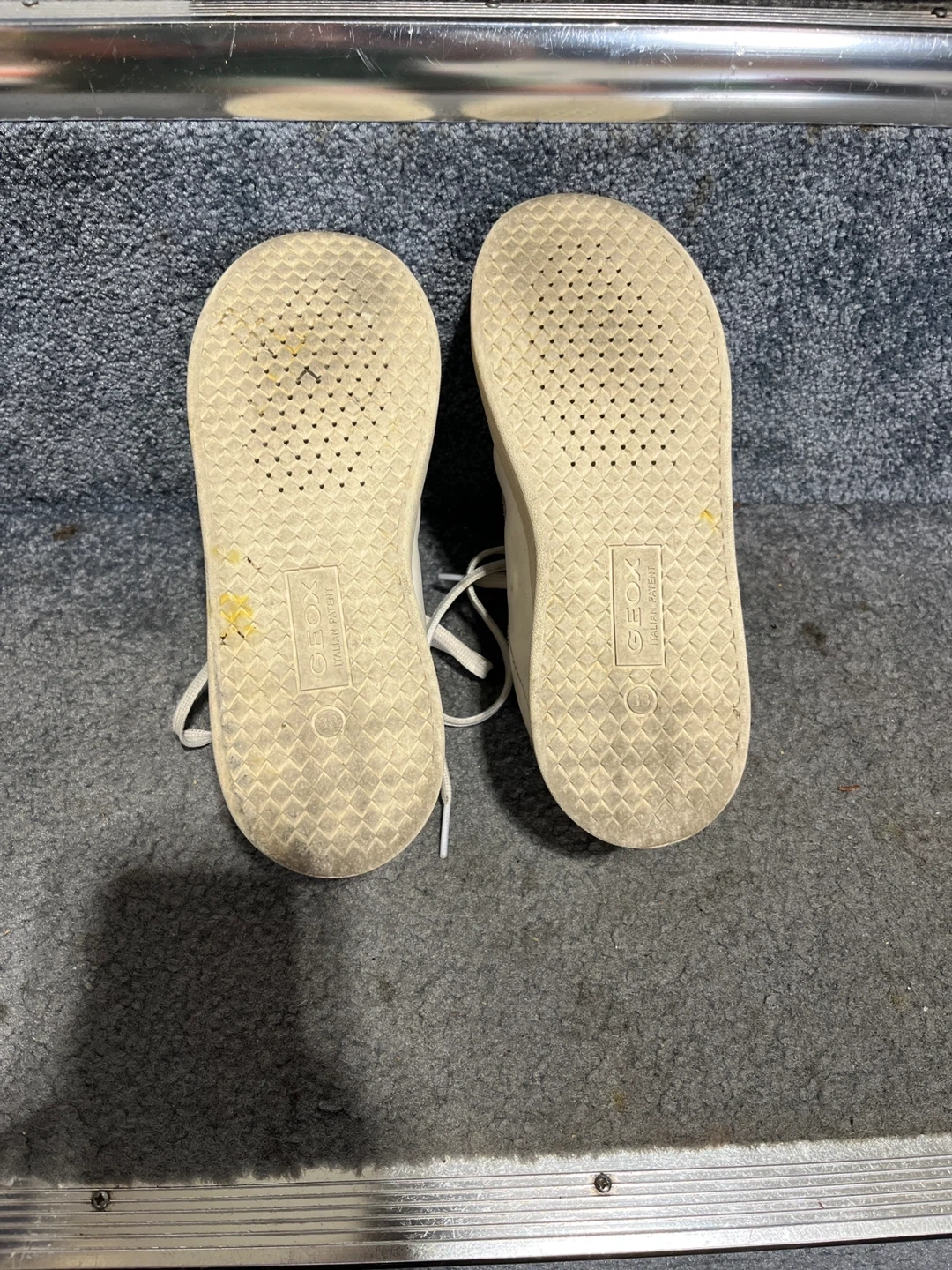 65Selling a pair of Geox white leather sneakers in size 41. They're in used condition but still have lots of life left. Perfect for everyday wear!