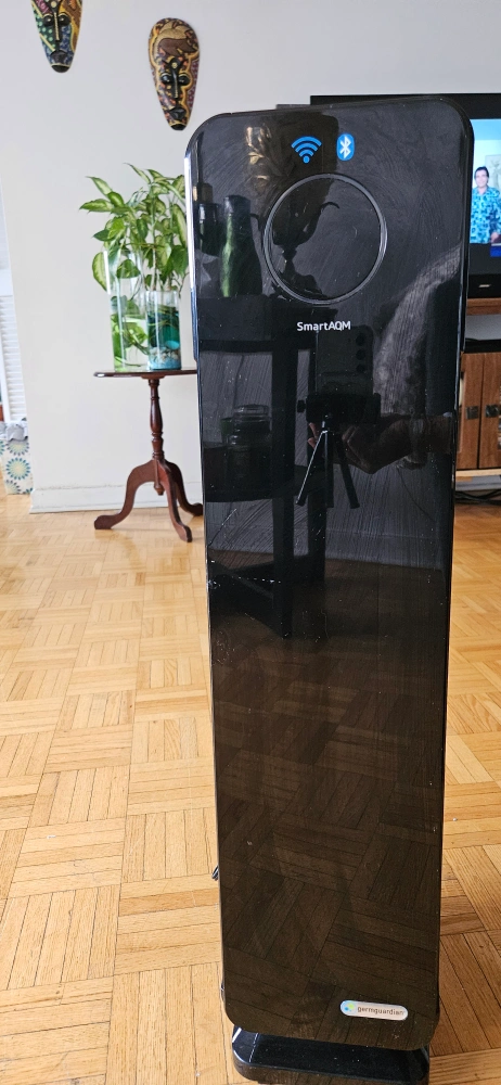 Selling a Germ Guardian SmartAQM air purifier in great condition! It's black and features a SmartAQM system for monitoring air quality. It also has a HEPA filter to help keep your air clean and fresh