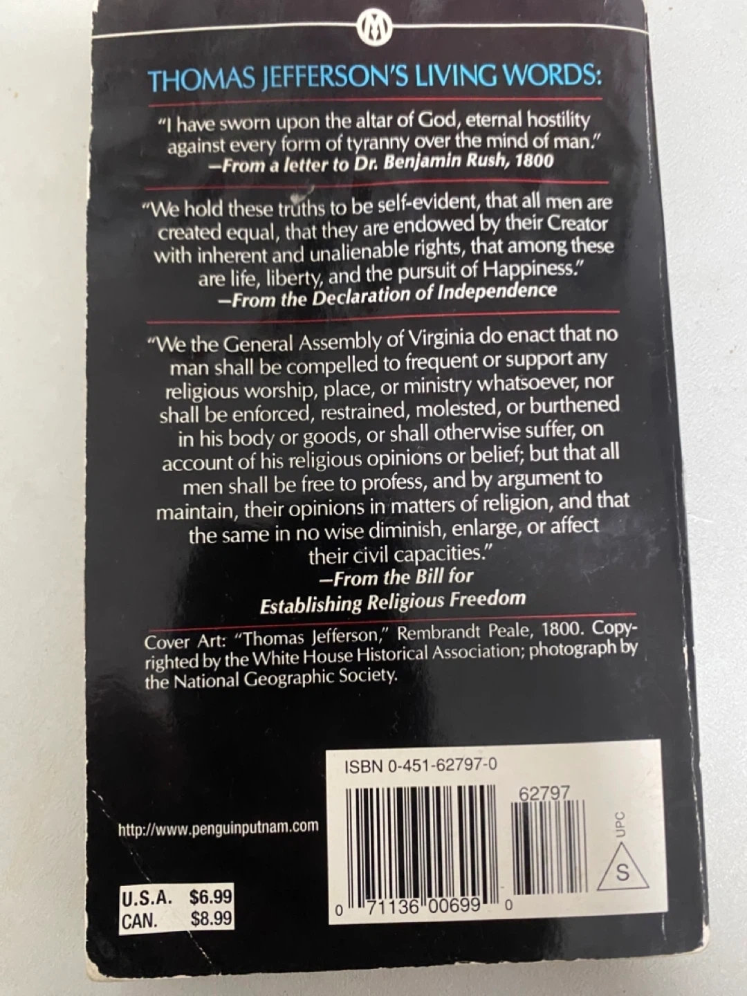 Selling the book "Jefferson: A Great American's Life and Ideas" by Saul K. Padover. It's an abridged biography of Thomas Jefferson. The book explores his life and ideas.