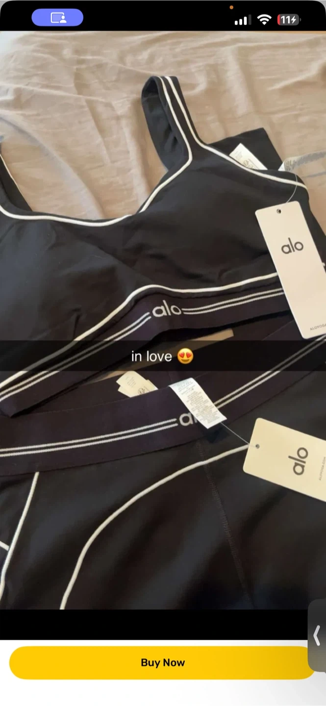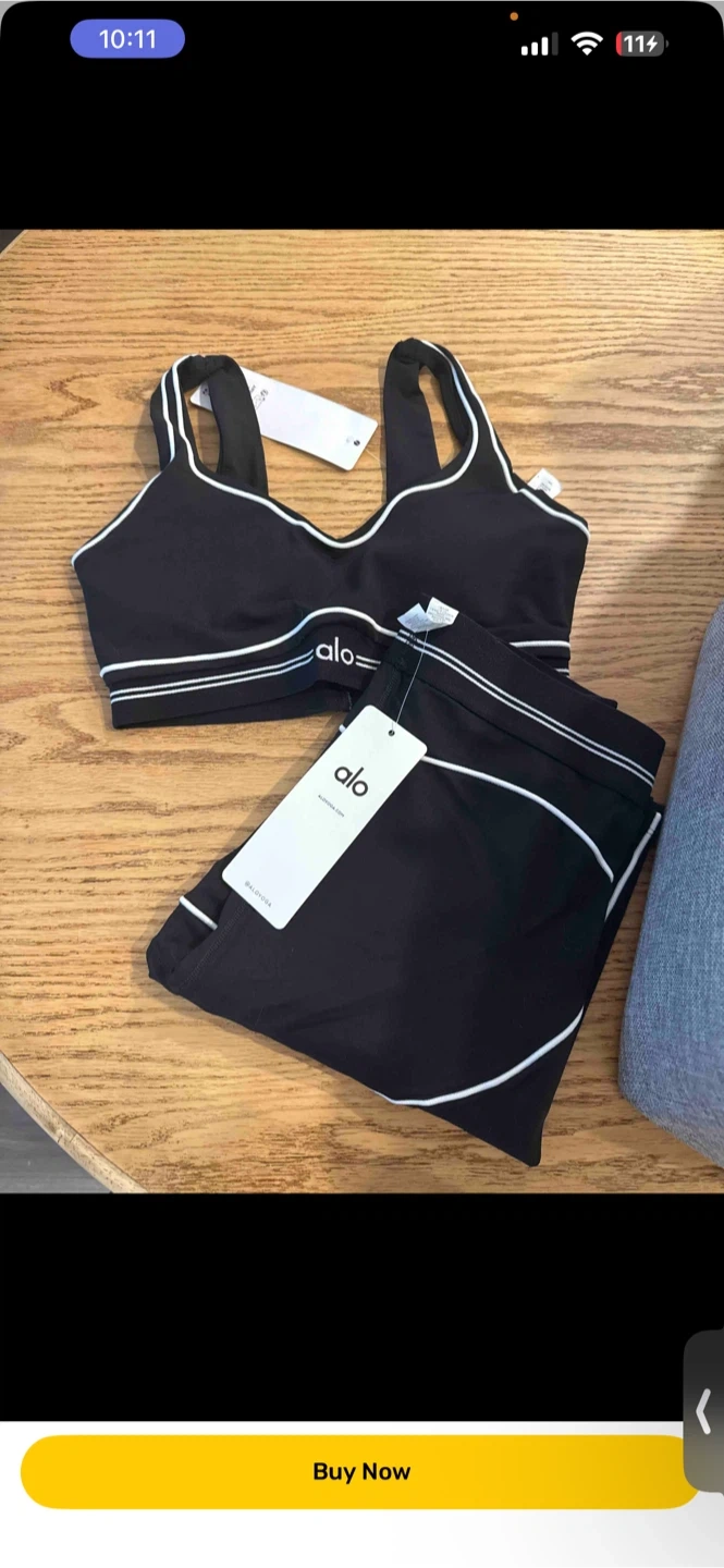 Brand new Alo Yoga sports bra and leggings set. Made with comfortable, stretchy material. It's perfect for workouts or lounging.