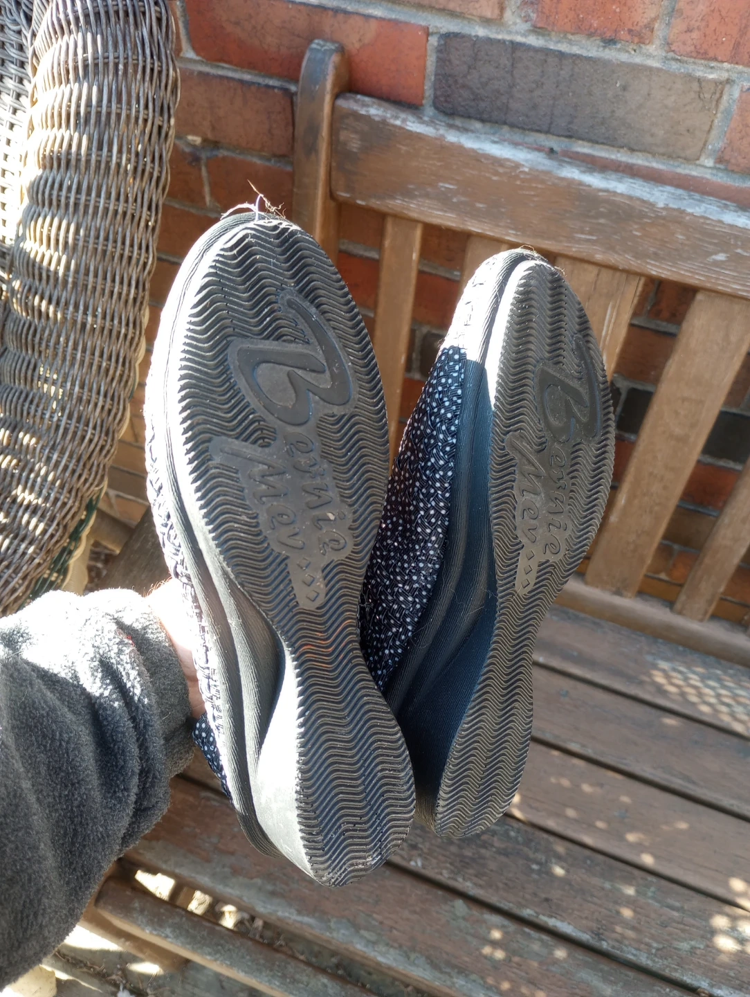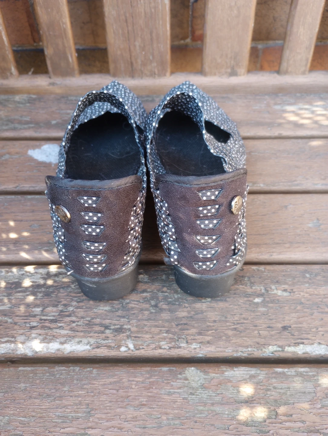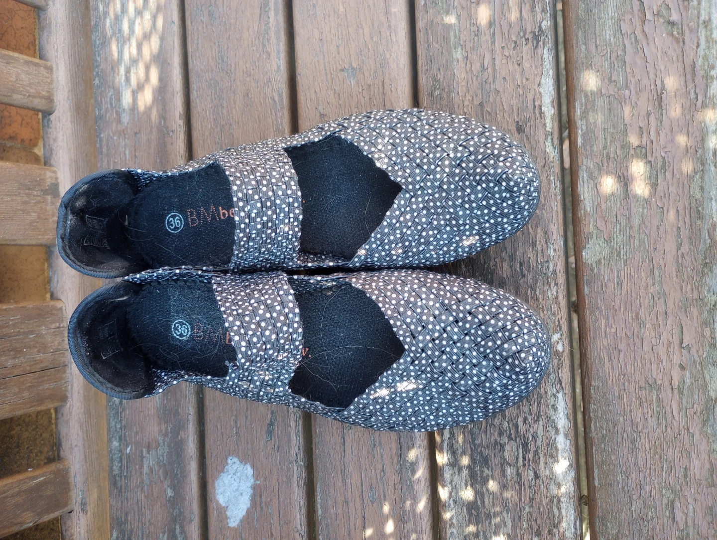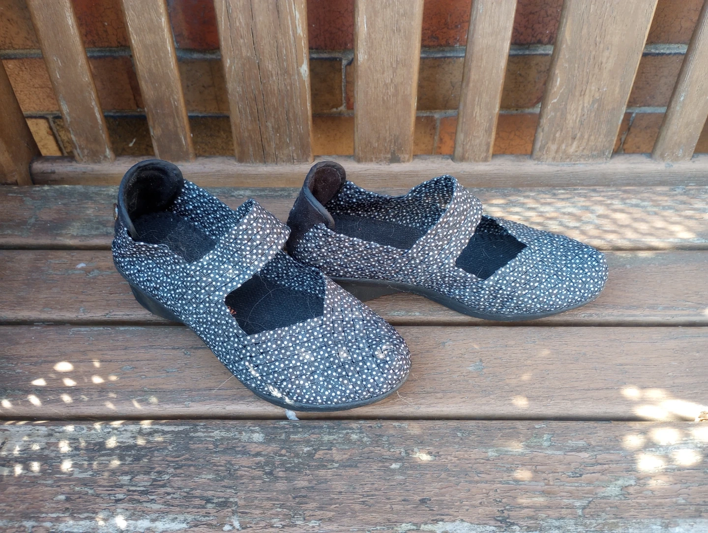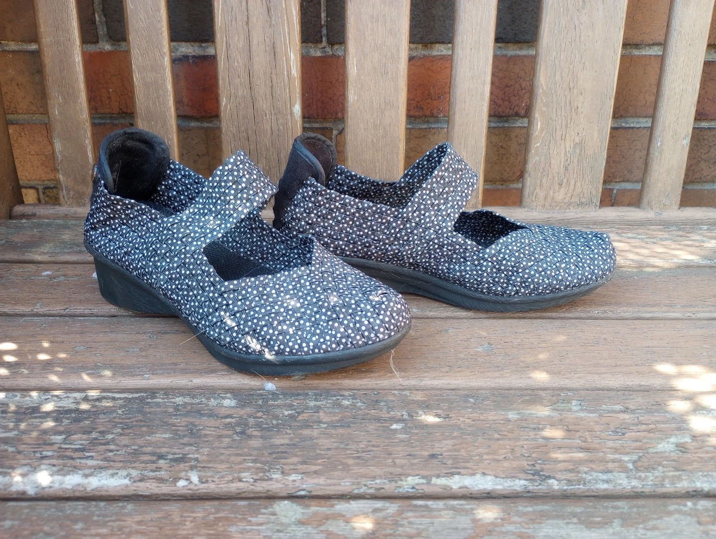 New, polka dot, very fun. These are great shoes, I just have a spine problem so medically can't wear them. They were bought at Set Me Free for jazz fest in 2017, then forgotten in a bin along with most of what I have listed. Smoke free cat free house.