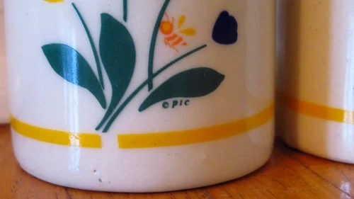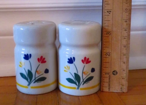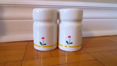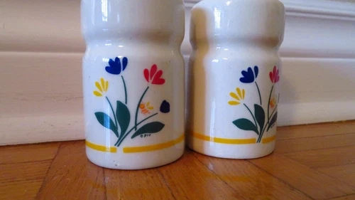 Enhance your kitchen's charm with this vintage 1980 salt and pepper set, featuring a delightful tulip and flowers design. Crafted from high-quality ceramic, the shakers exude a timeless elegance that is sure to be a conversation starter at any gathering. The classic white color complements any table setting, making it a versatile addition to your dining ensemble. While the brand is not explicitly stated as Marimekko, the unique style and craftsmanship suggest a piece with a similar aesthetic. The intricate detailing and durable material make this set a practical and stylish choice for both daily use and special occasions. Add a touch of vintage flair to your kitchen with these lovely ceramic shakers.