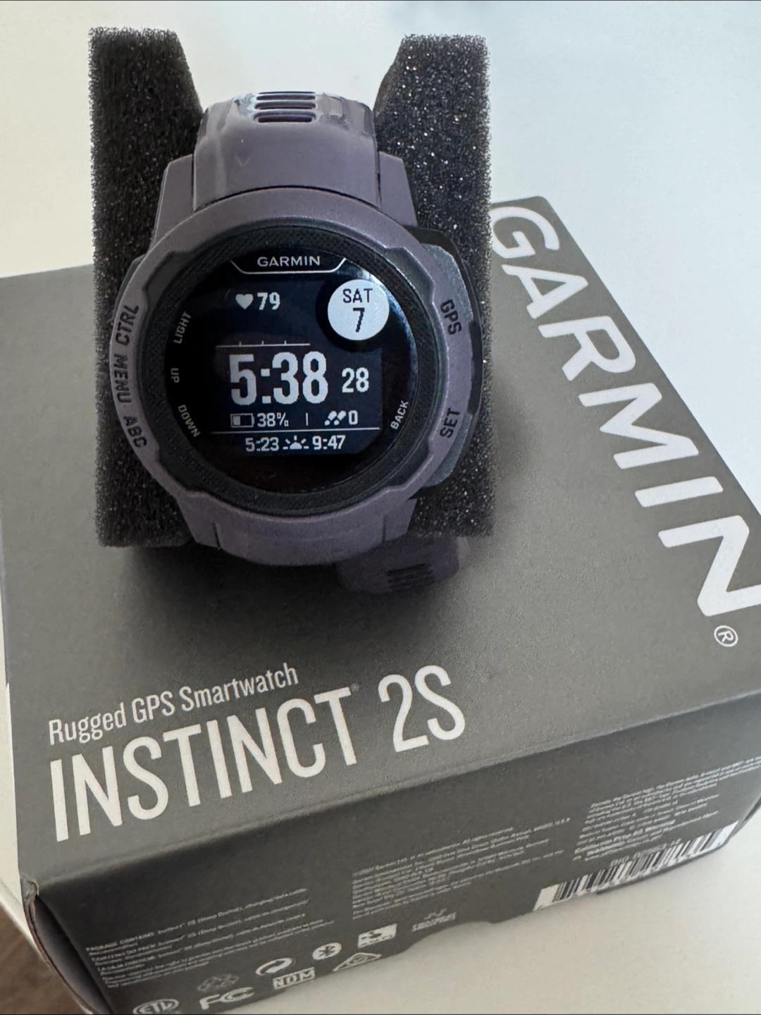 Selling a Garmin Instinct 2S Rugged GPS Smartwatch. It's in great condition and comes with its original box. This smartwatch is perfect for outdoor adventures and fitness tracking. It's lightweight and portable, making it easy to wear during any activity