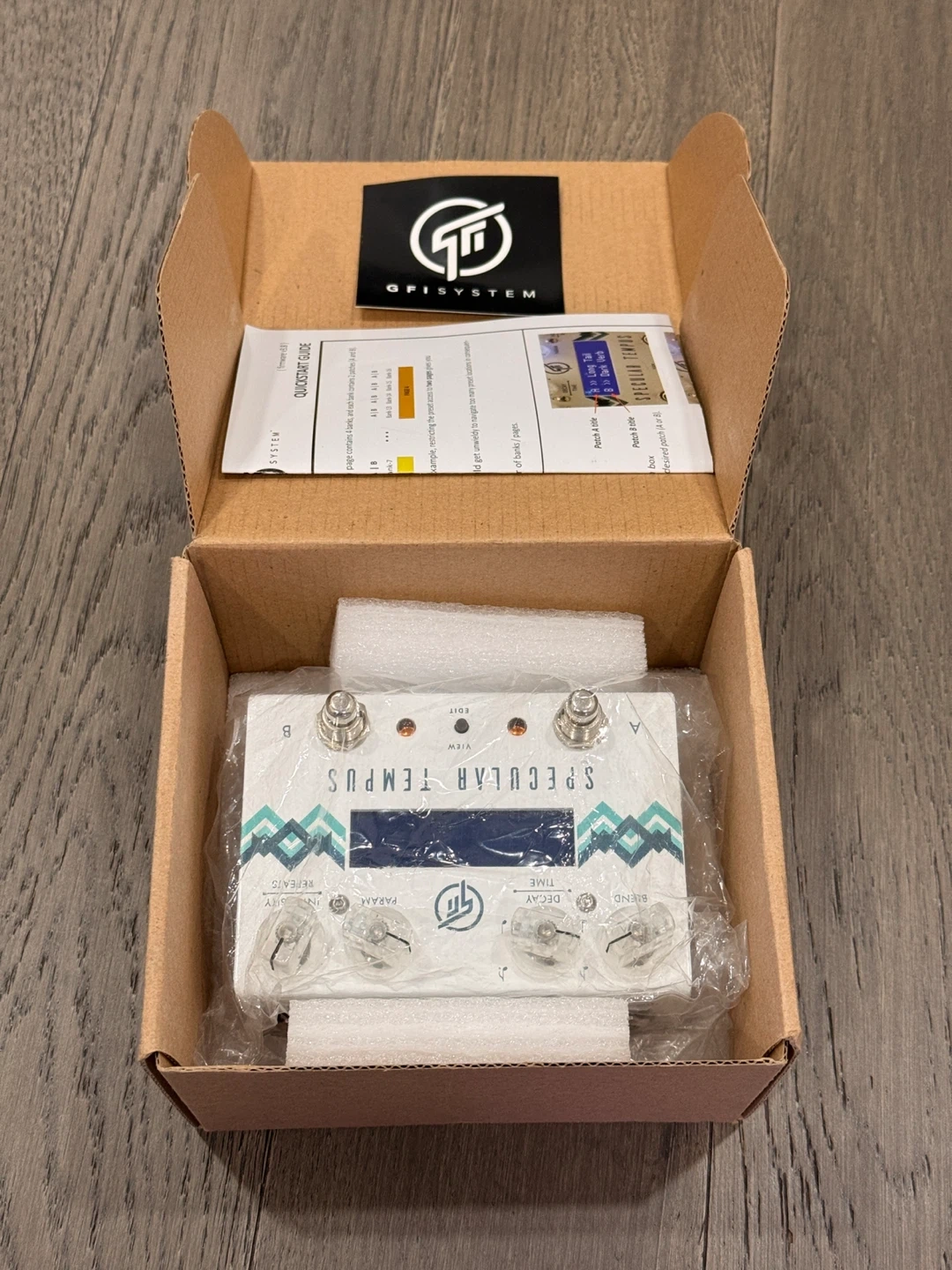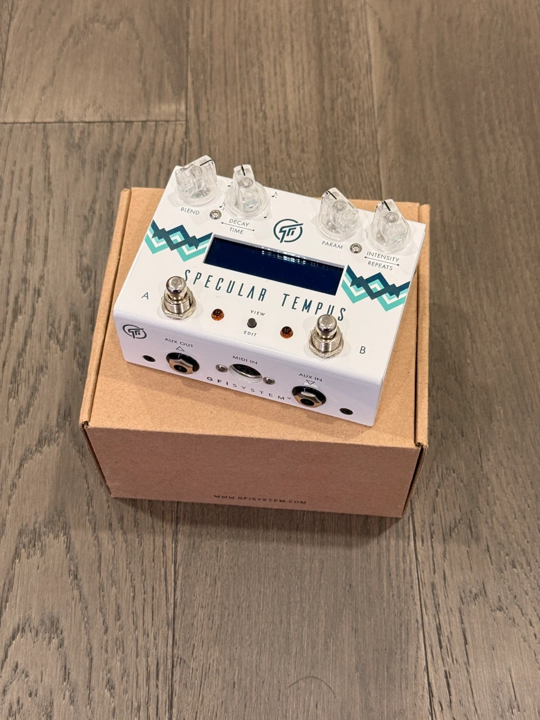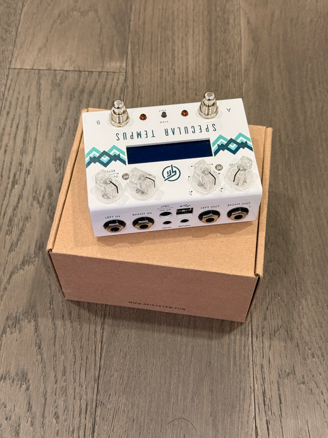10Selling a GFI System Specular Tempus reverb and delay pedal! It's in great condition and comes with the original box. Perfect for adding some amazing effects to your guitar or other instruments. Check out the photos! I’m the only owner of this pedal. Had this pedal for 3 years and used it at home studio only. Serious buyers only and no trades. If this as is up it’s still available.