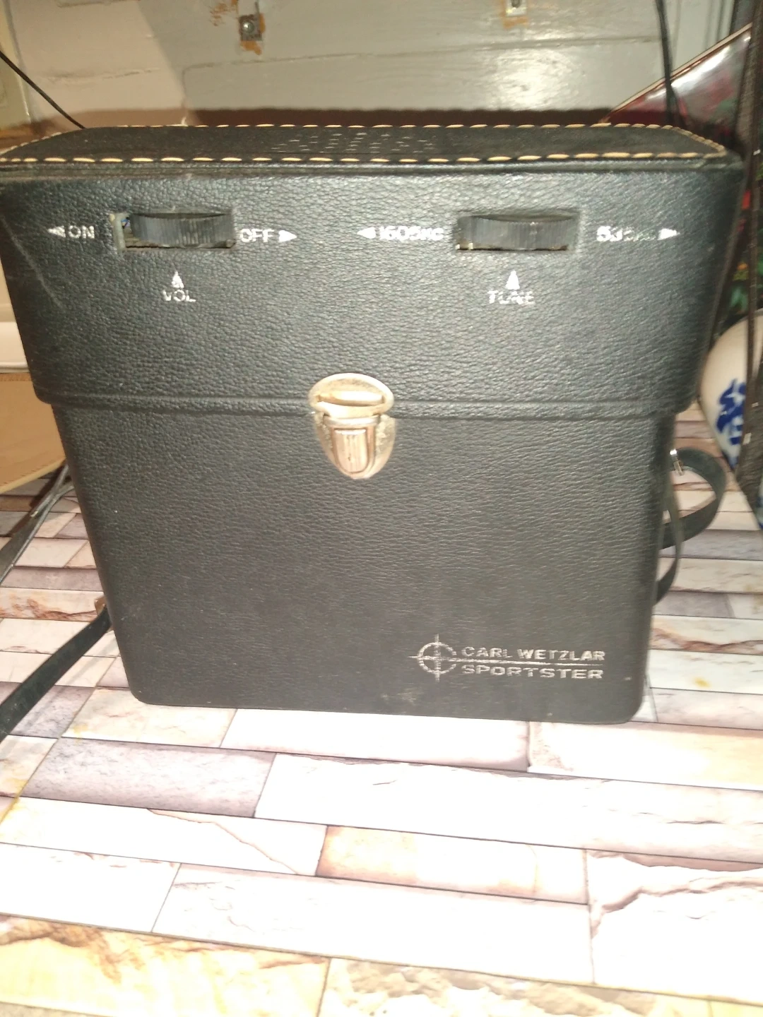 This is a really unique find it is actually a binocular case leather with shoulder strap and it has an AM/FM radio in the lid it's really really cool somebody who's an enthusiastic outdoors person would enjoy it for sure and somebody who likes vintage collectibles.