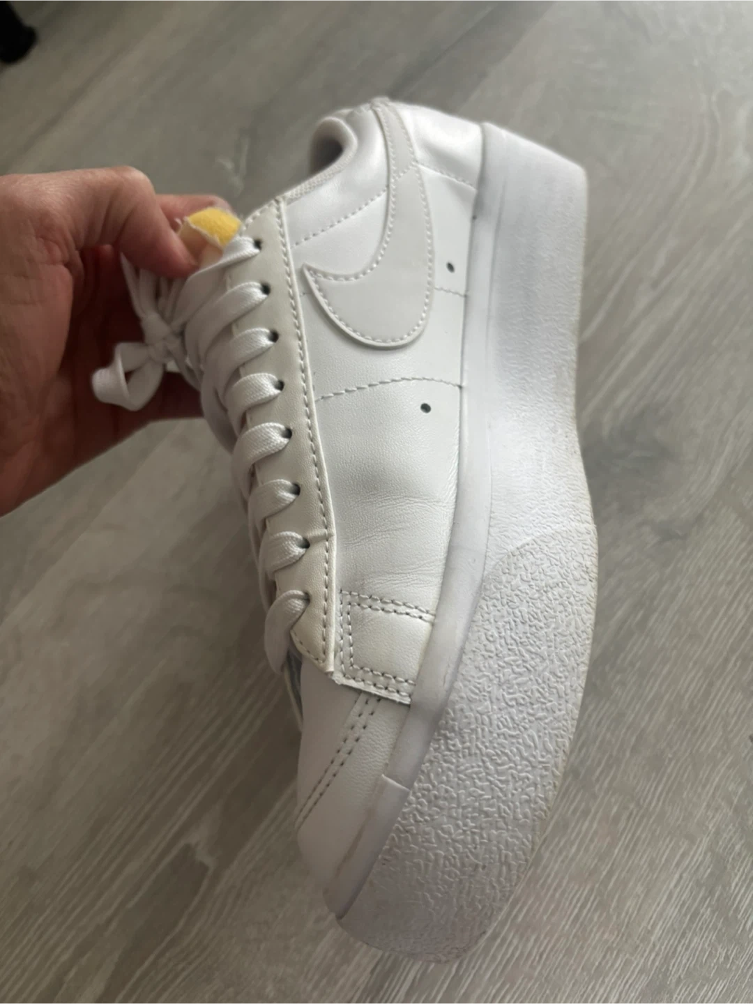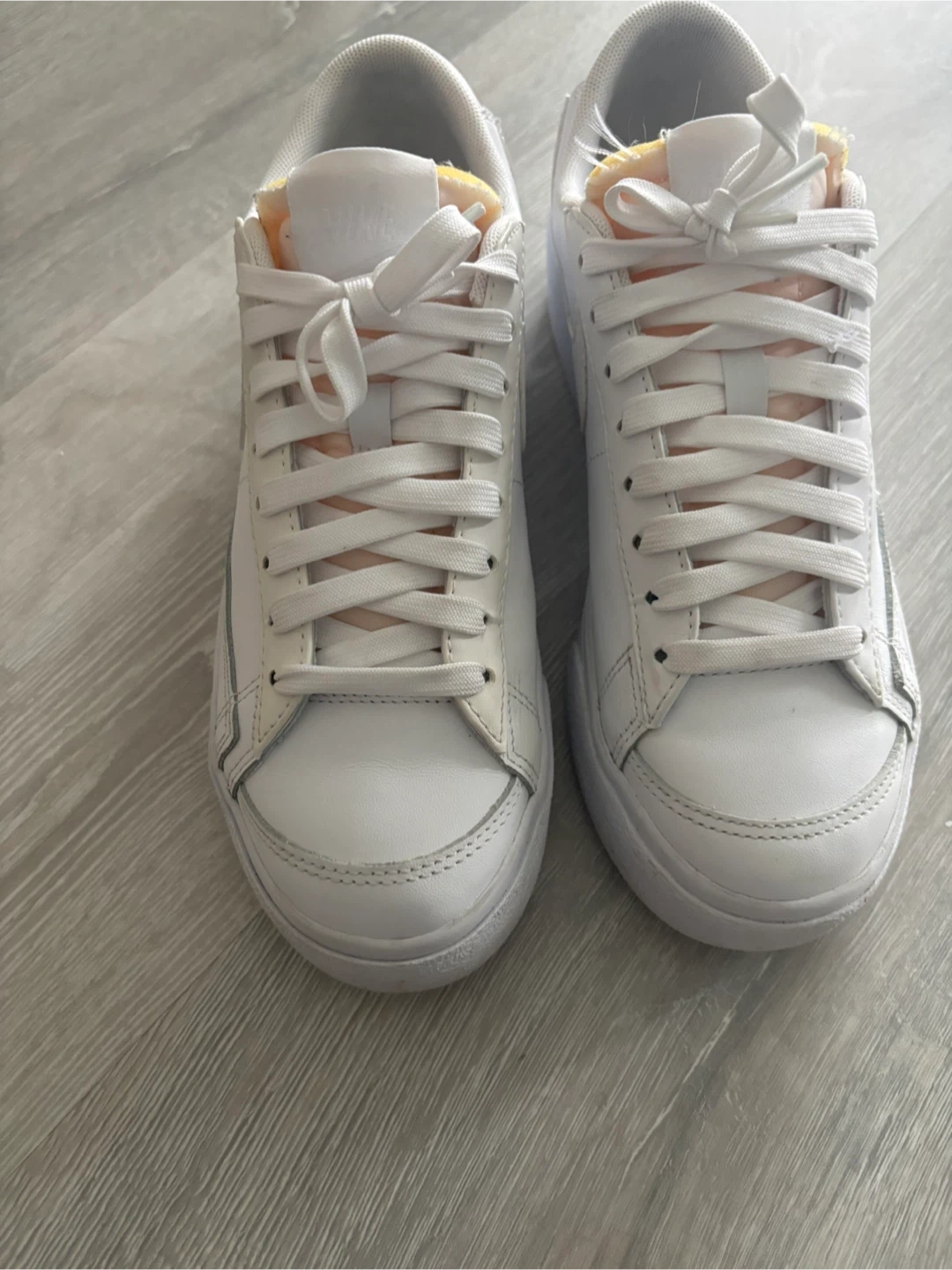 White leather Nike Blazer Low sneakers. EUR 37.5, UK 4, CM 23.5. Made in Indonesia. Manufactured 09/11/21. These are great for everyday wear!