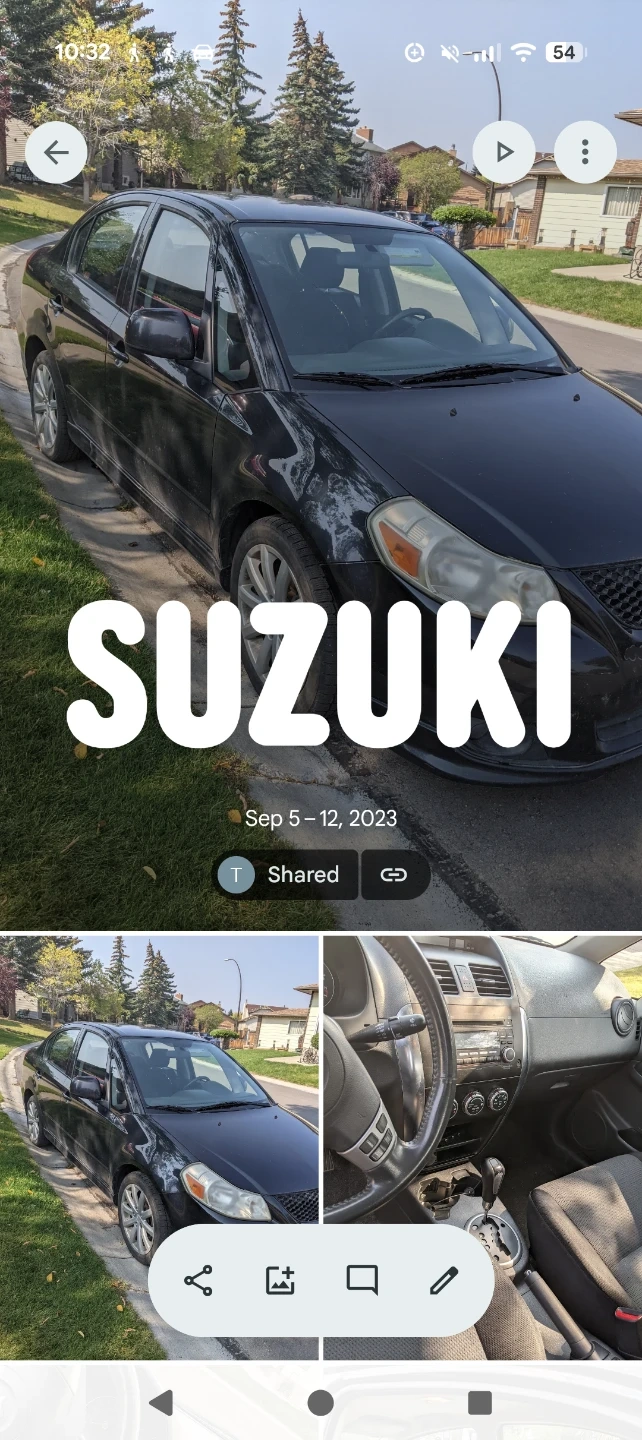 Selling a black Suzuki SX4. This vehicle has cloth interior and an automatic transmission. Ex-large trunk space. Heated seats. Cruise. Excellent stereo. Next to new Winter tires. It's a smooth ride, reliable car for daily commuting. Great for city driving!