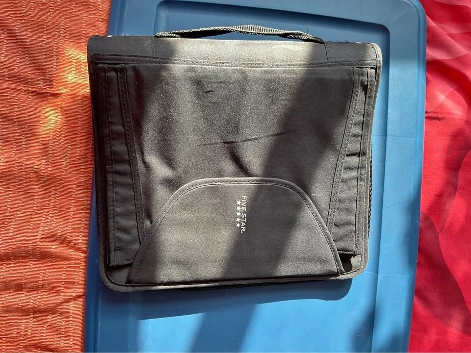 Durable Five Star zippered binder for school or work. Has 3 rings inside and some handy pockets for organizing stuff. Keeps everything secure with the zipper closure. Great for notes or documents.