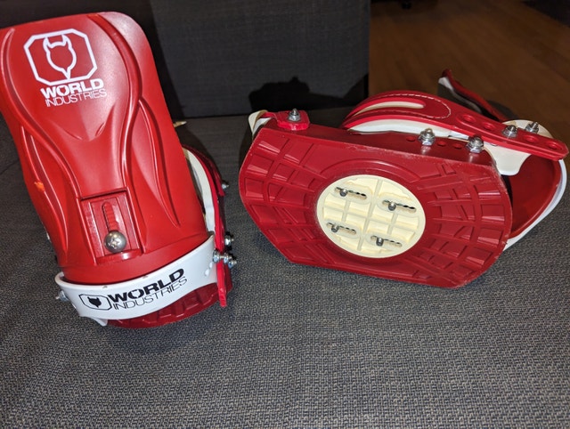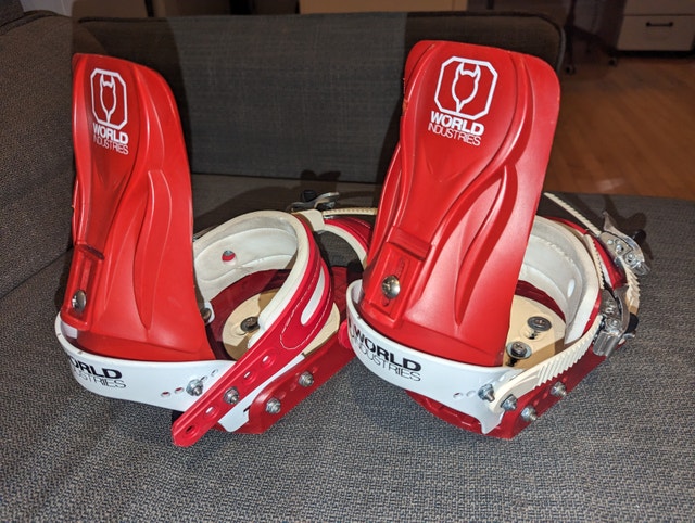 1 / 61 / 6Buy & SellWorld Industries Vintage Snowboard BindingsWorld Industries Vintage Snowboard Bindings$150Snowboard bindings by World Industries. Vintage. Size Medium. Very good condition.WHERE TO MEETCheck LocationView MapSELLERverifiedRCWest Queen West791 review1 chats·2 favorites·58 viewsSEND CHAT TO SELLERHi RC! I’m interested in your listing.Hi RC! I’m interested in your listing.Get the Karrot app to chatSign In to chat