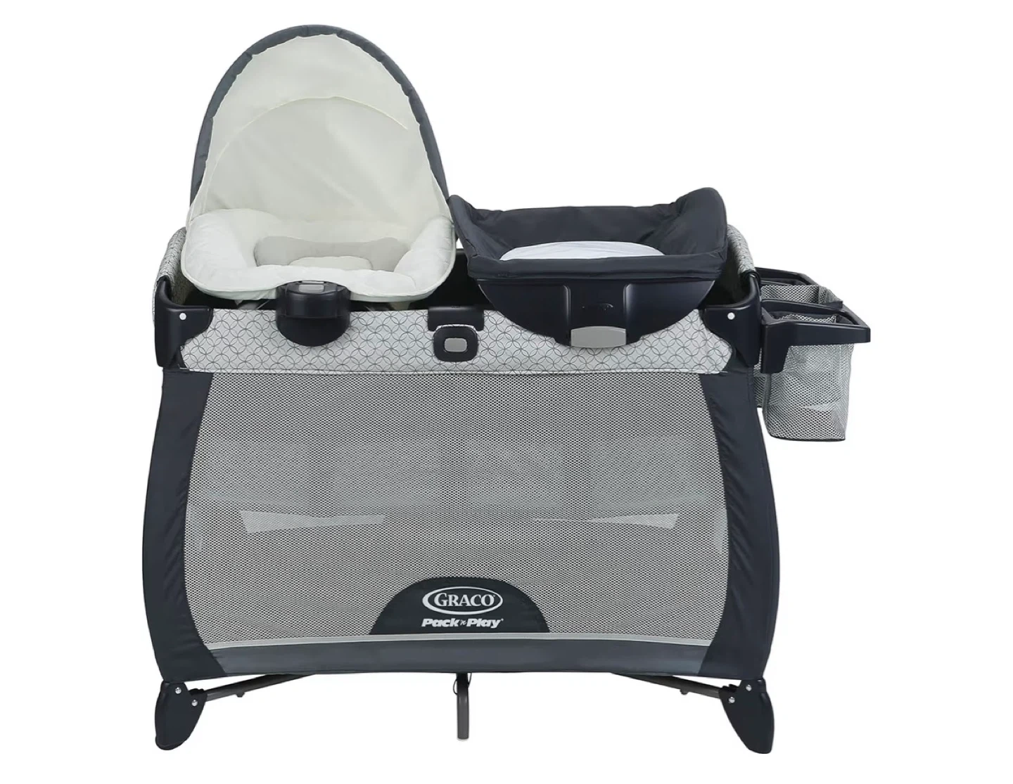 This Graco Pack 'n Play comes with a portable lounger and changing table. It's designed for your baby's comfort and convenience. The playard features mesh sides for ventilation and side organizers for essentials. Included in purchase the playpen mattress for comfort and sleep.