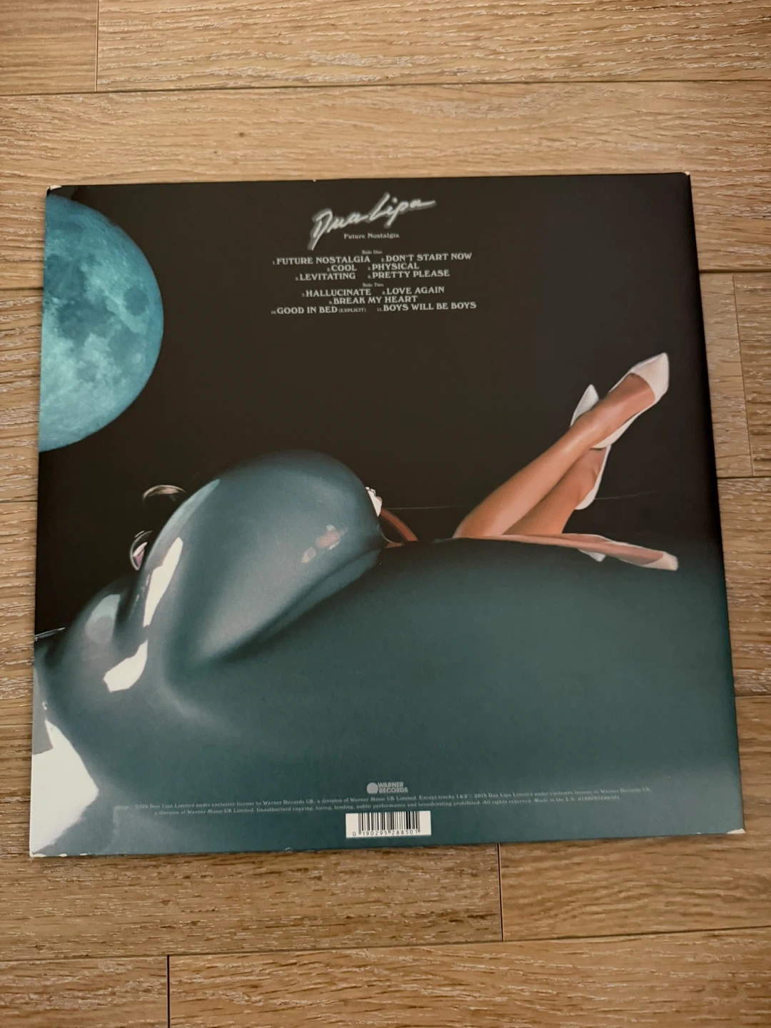 Dua Lipa's Future Nostalgia vinyl record is here! It includes hit tracks like 'Don't Start Now' and 'Levitating.' This is a great addition to any music collection.