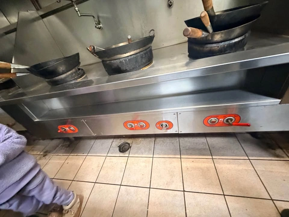 Durable stainless steel commercial wok range. Has three powerful burners and water spouts for each station. Great for a restaurant or food truck kitchen setup. 3 lane wok burner $3800. 1 lane wok burner $1900. Bench for restaurant $1500. Reach me out for an offer on all.