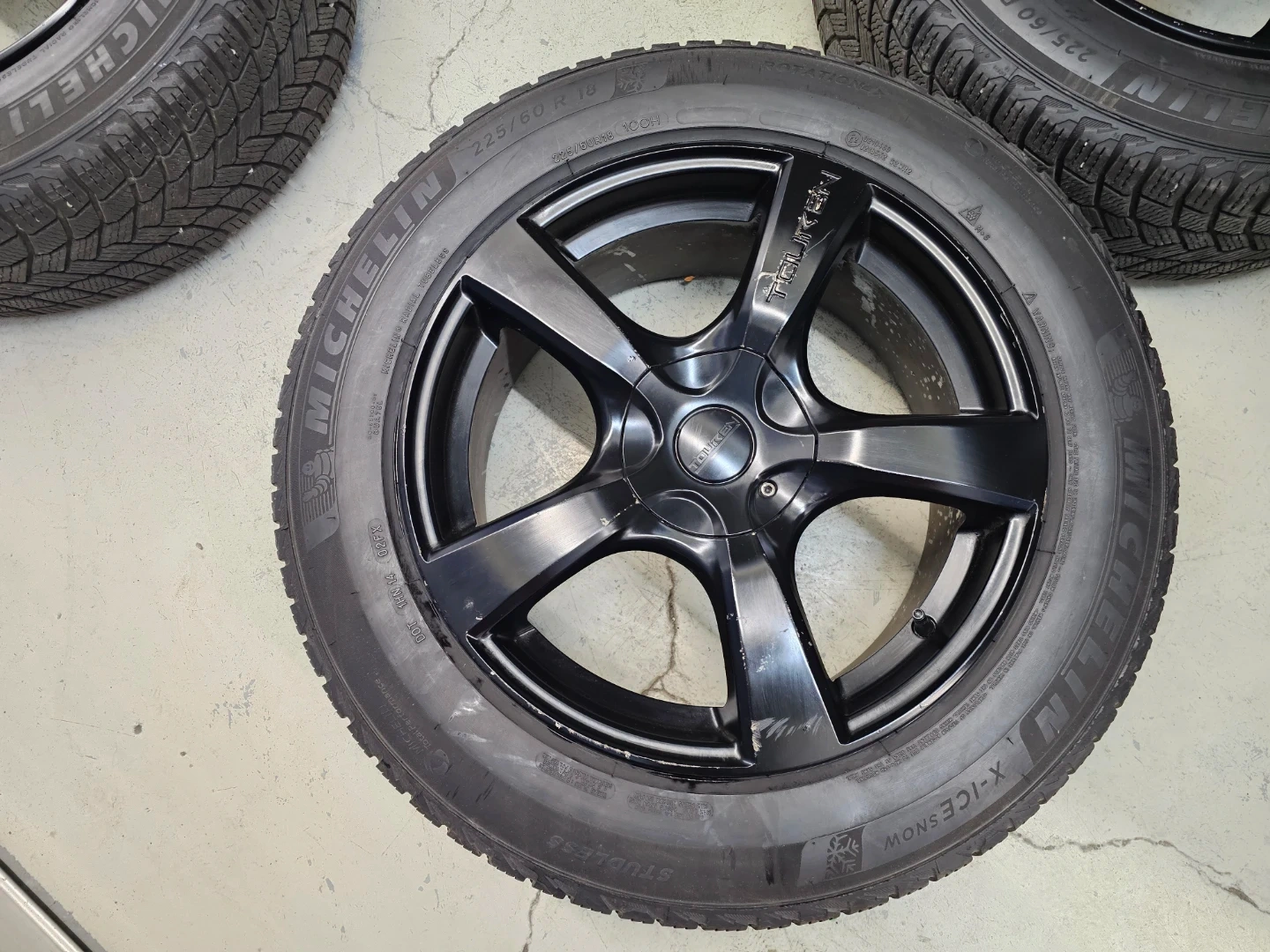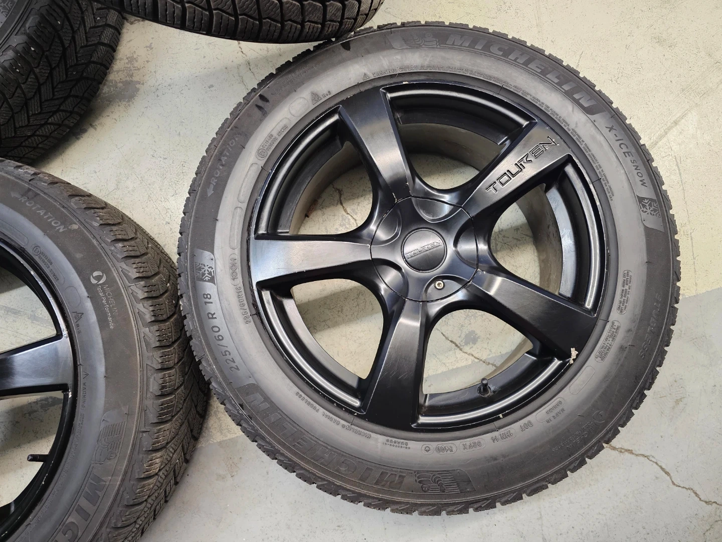 Set of 4 18" Michellin X-ICE winter tires on touren rims 225/60/R18. Rims and tires are in good shape, no bend, no cracks, no damage. Lots of thread left on tires, no patch, no leaks. Rims are multi-fit with bolt pattern 5×120 and 5×112