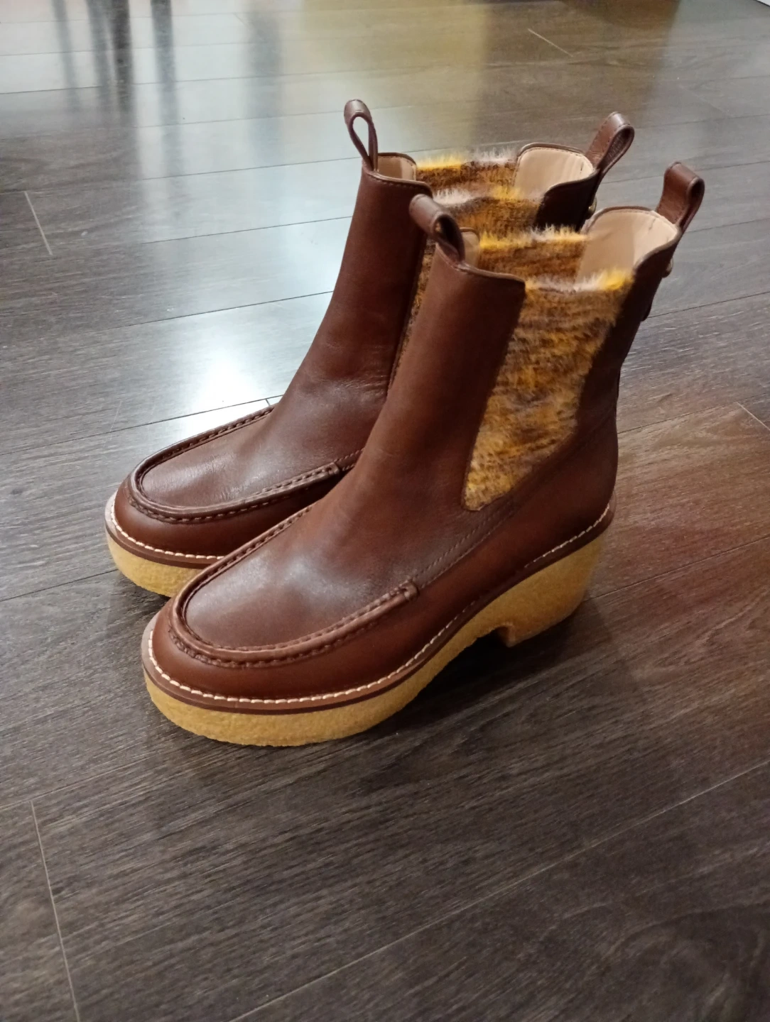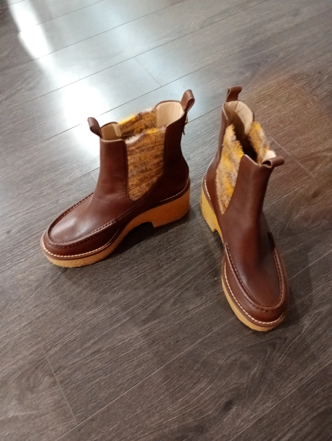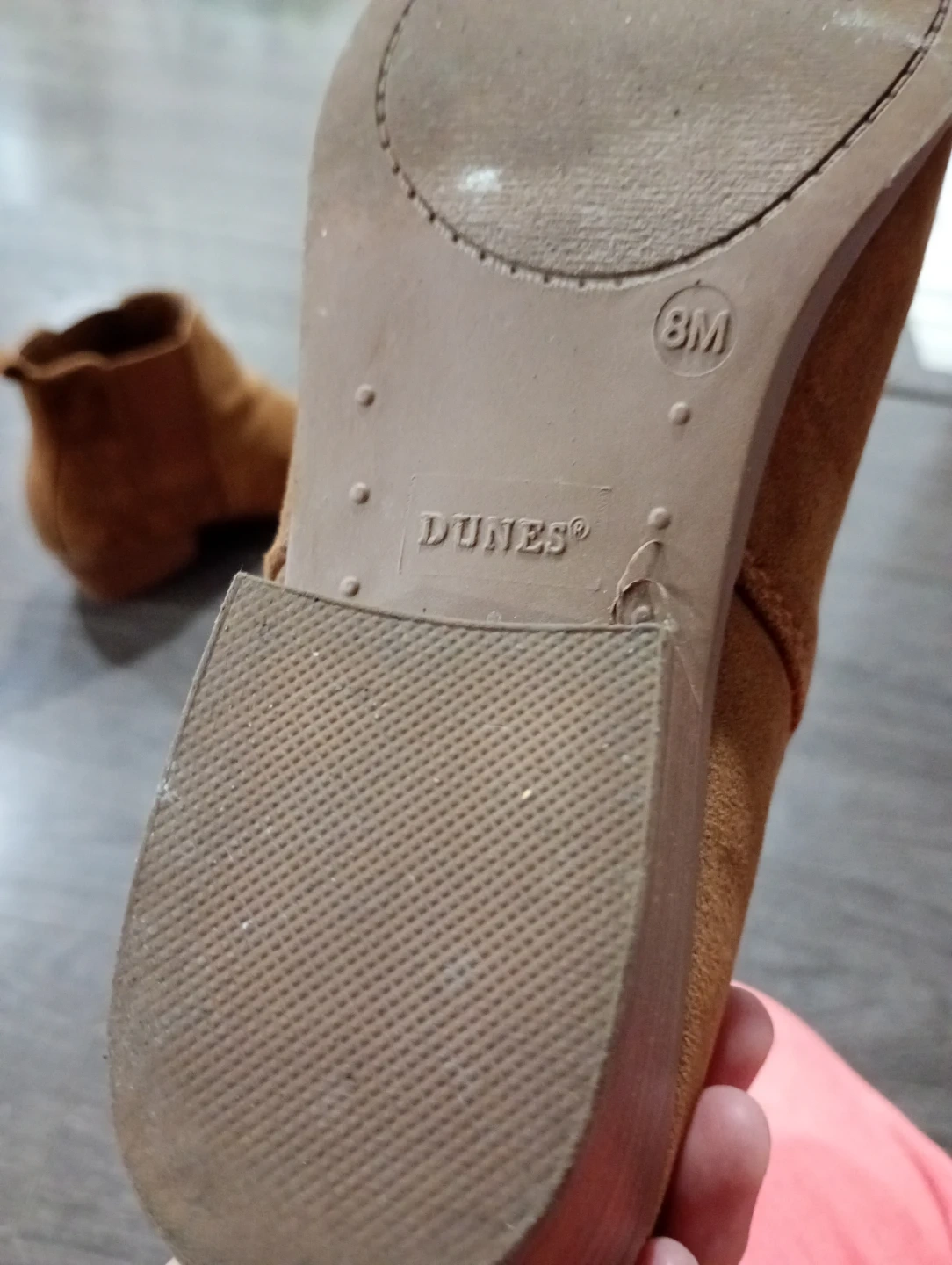 Comfy brown suede Chelsea boots with elastic side panels. They have a low heel and pull tabs for easy on and off. Great for everyday wear!
