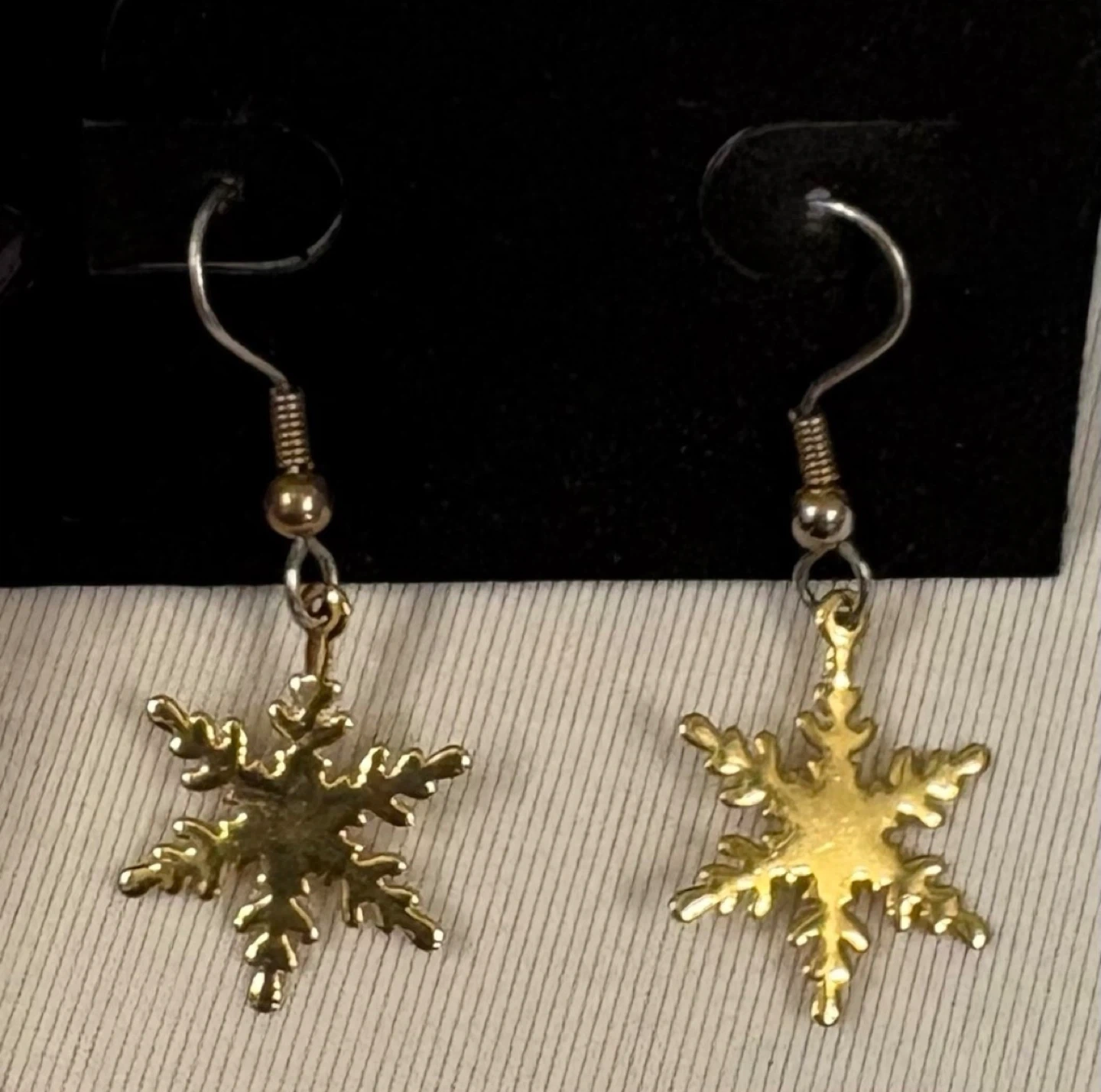 Gold Tone Snowflake Dangle Earrings Winter Holiday Jewelry