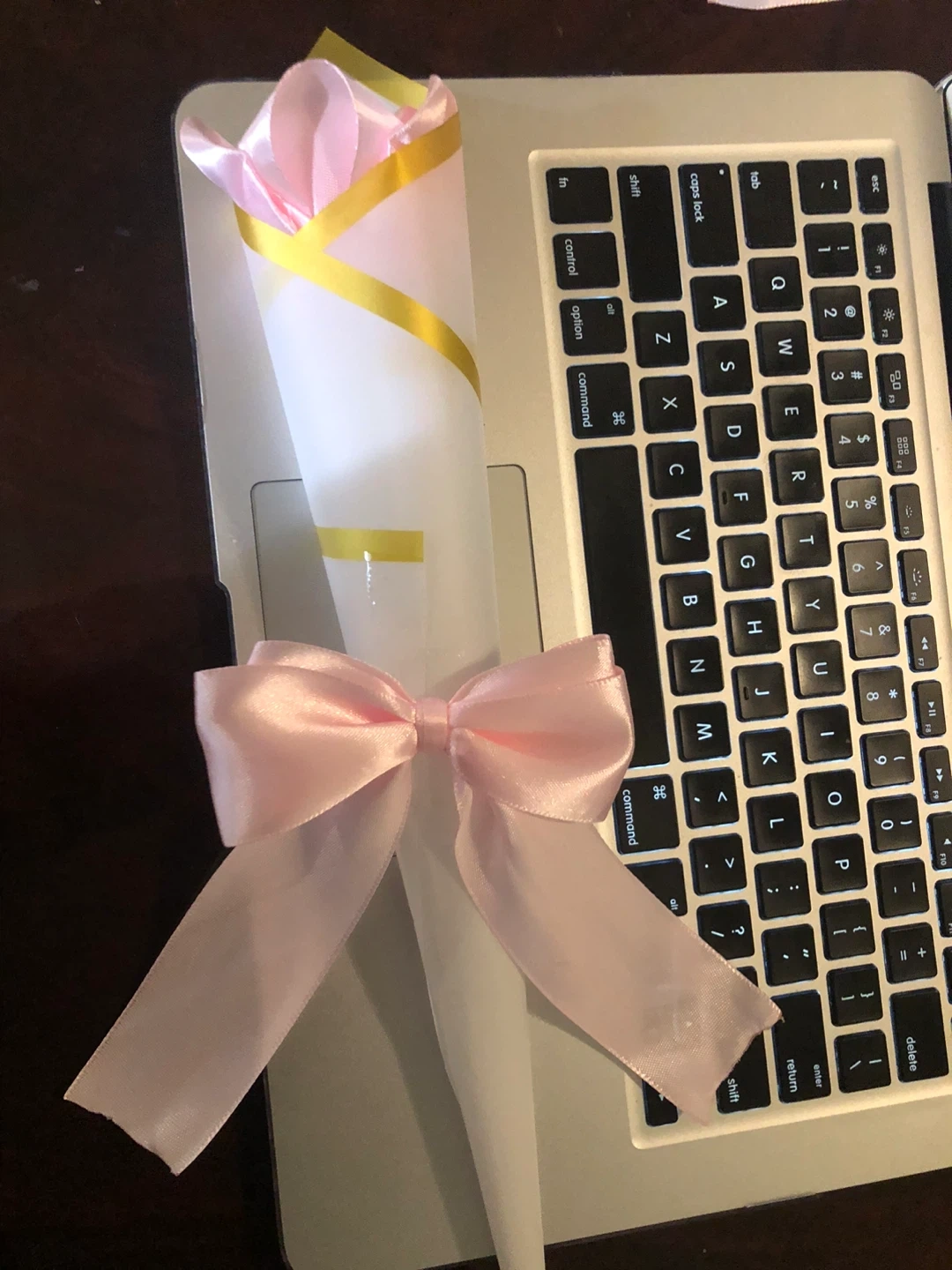 A single forever lasting wrapped pink rose