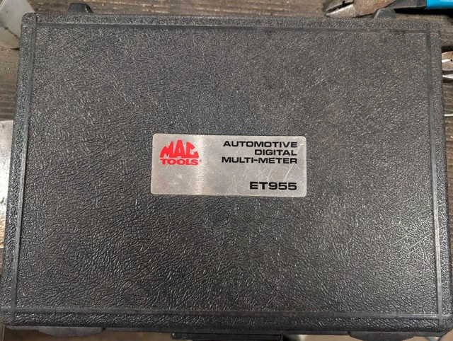 Here's a MAC Tools ET955 Automotive Digital Multi-Meter, in used condition, for all your electrical testing needs. It comes complete with its case and accessories. I've priced it to sell based on its condition and similar listings. * Brand: MAC Tools * Model: ET955 * Type: Automotive Digital Multi-Meter * Condition: Used Don't miss out on this handy tool! If the ad's up, it's still up for grabs! Call, text, make an offer 705-440-9195