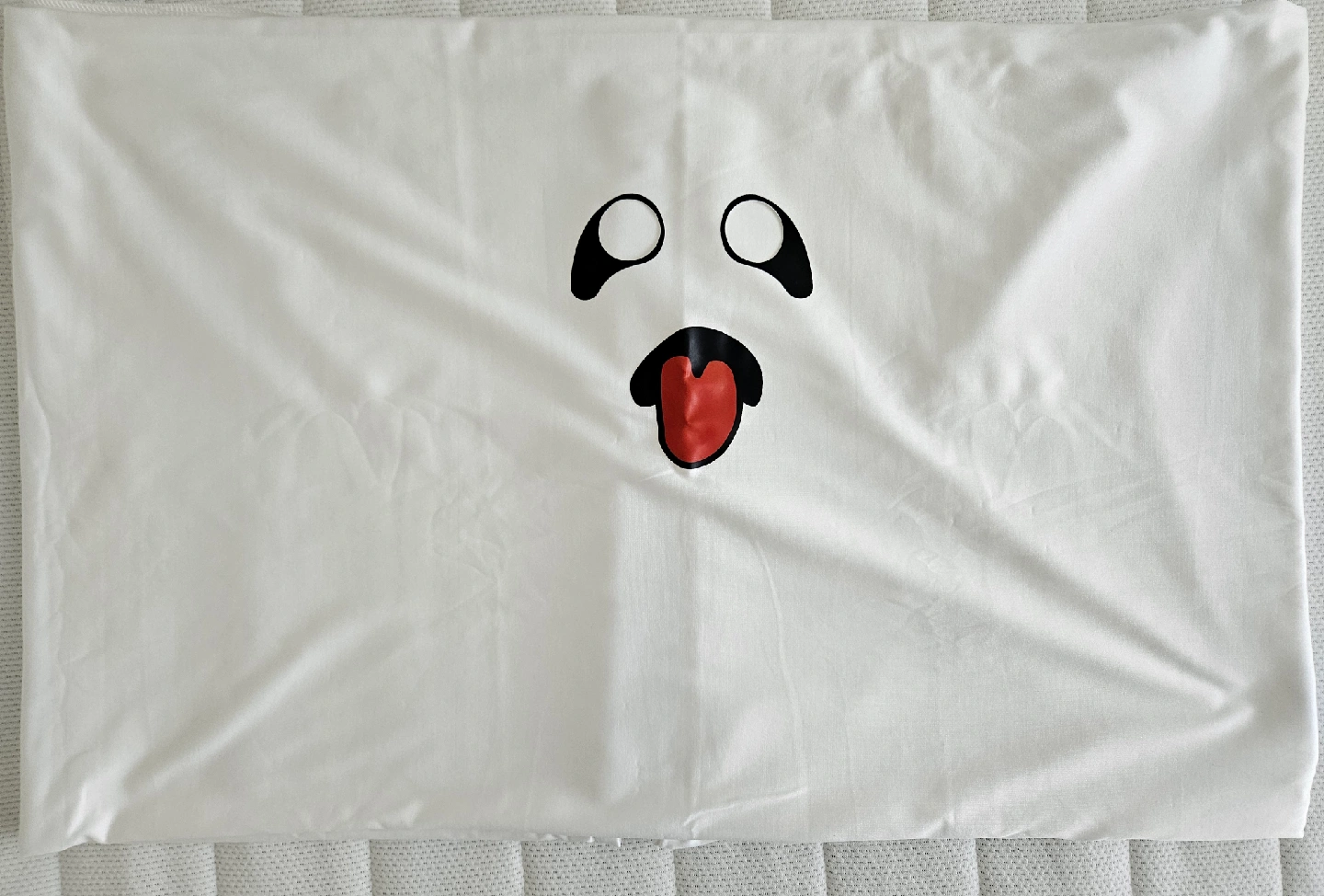 Get ready for Halloween with this fun ghost costume! Perfect for Halloween parties, trick-or-treating, or themed events. White ghost cloak with attached cartoon-style face (big eyes + red tongue) Easy to wear, simply slip over your head Lightweight and comfortable material Size S, 80cm long