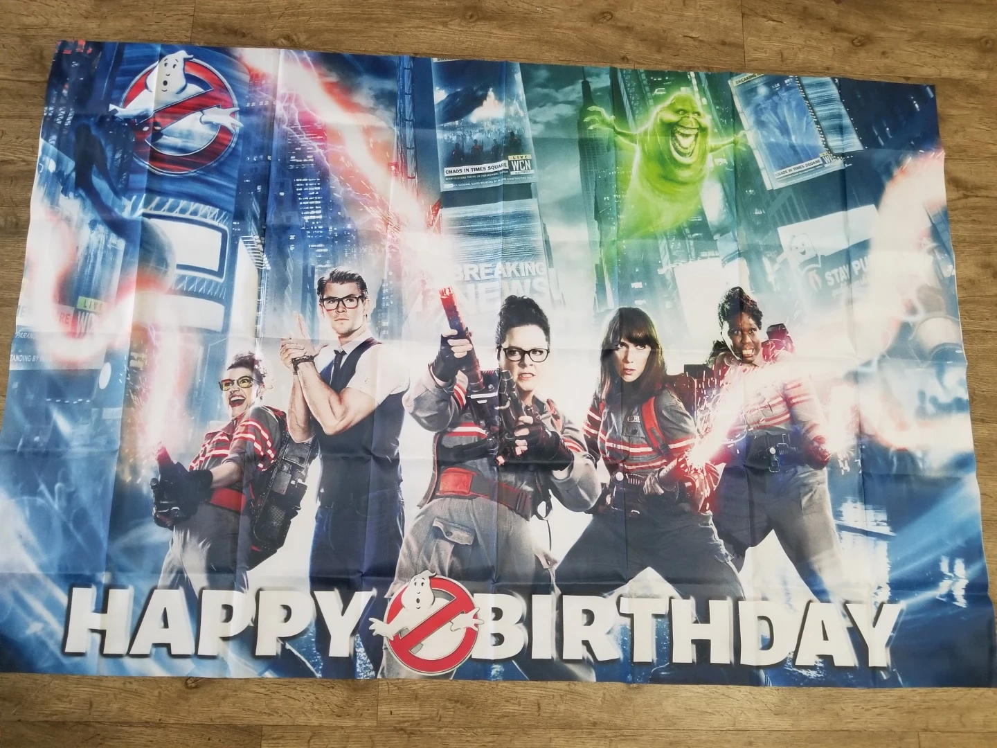240Large banner with the Ghostbusters logo and the words Happy Birthday. Features the cast of the 2016 Ghostbusters movie. Approximately 58x39
