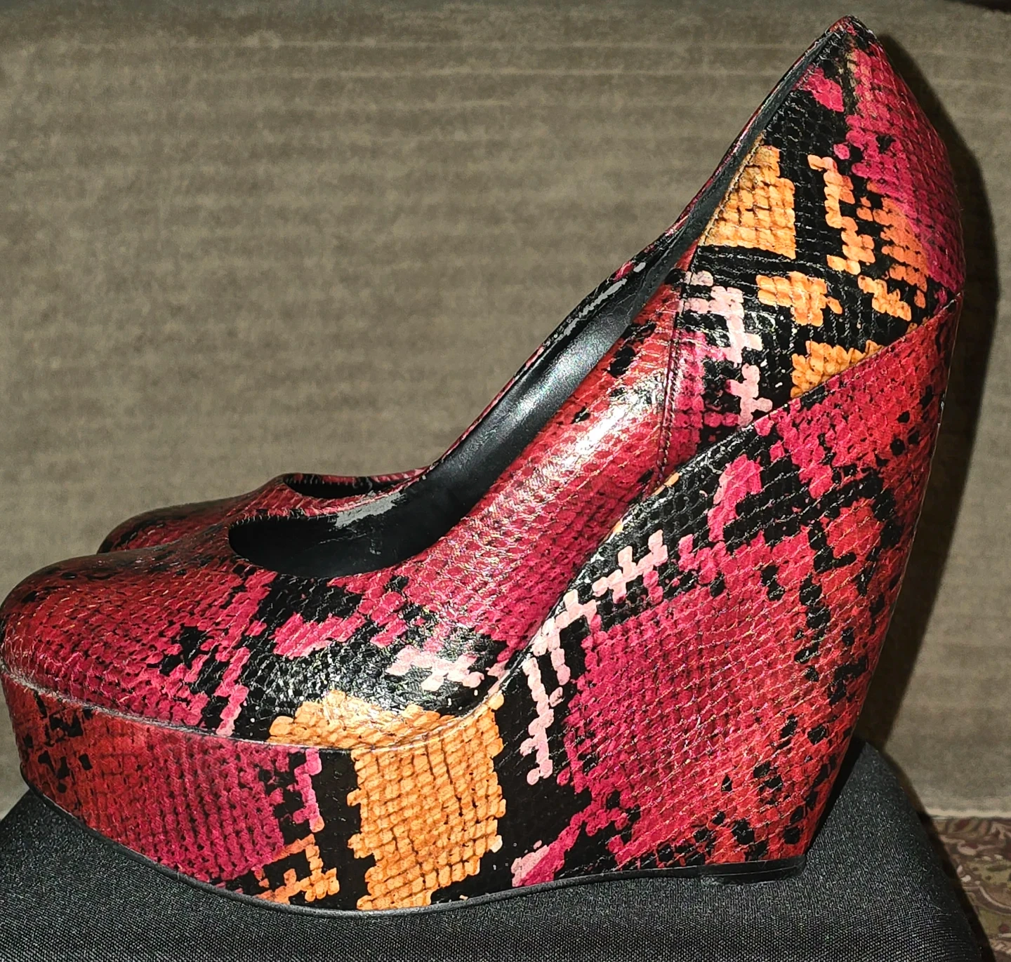 ALDO Women's Red Snake Print Wedge Heels
