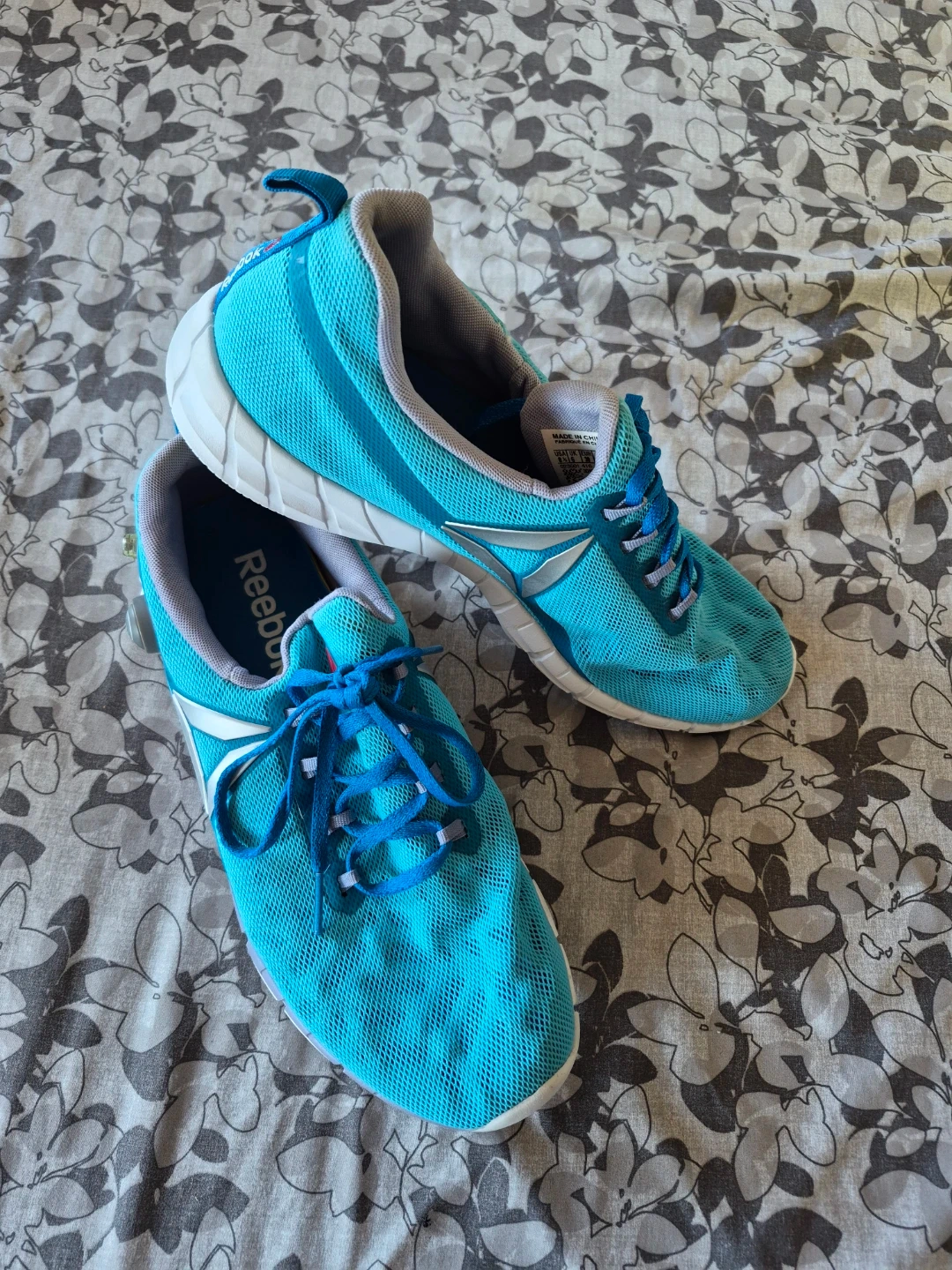 These bright blue Reebok running shoes feature a breathable mesh upper and a supportive sole. They're perfect for hitting the gym or going for a jog. Lace-up closure for a secure fit.