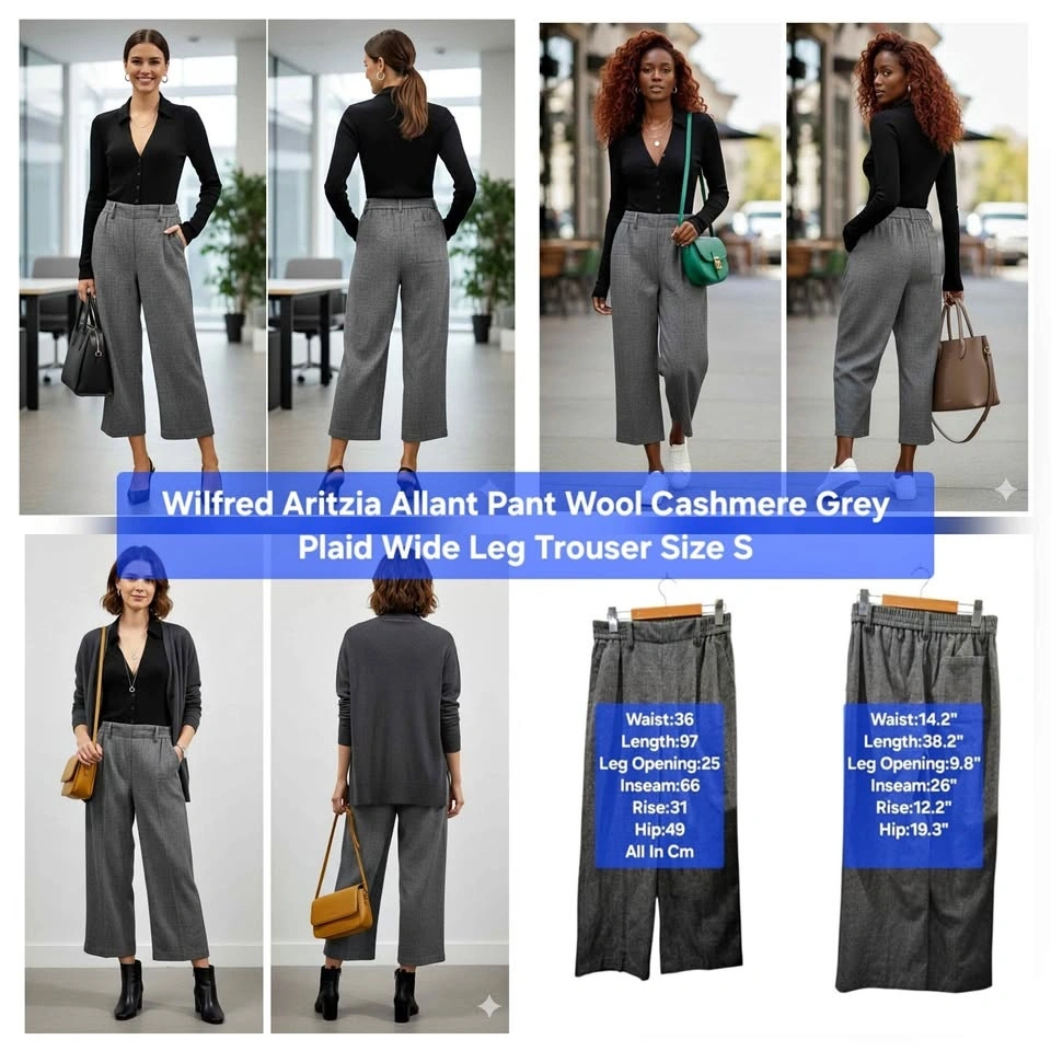 Aritzia Wilfred Allant Pant Wool Cashmere Grey Plaid Wide Leg Tr