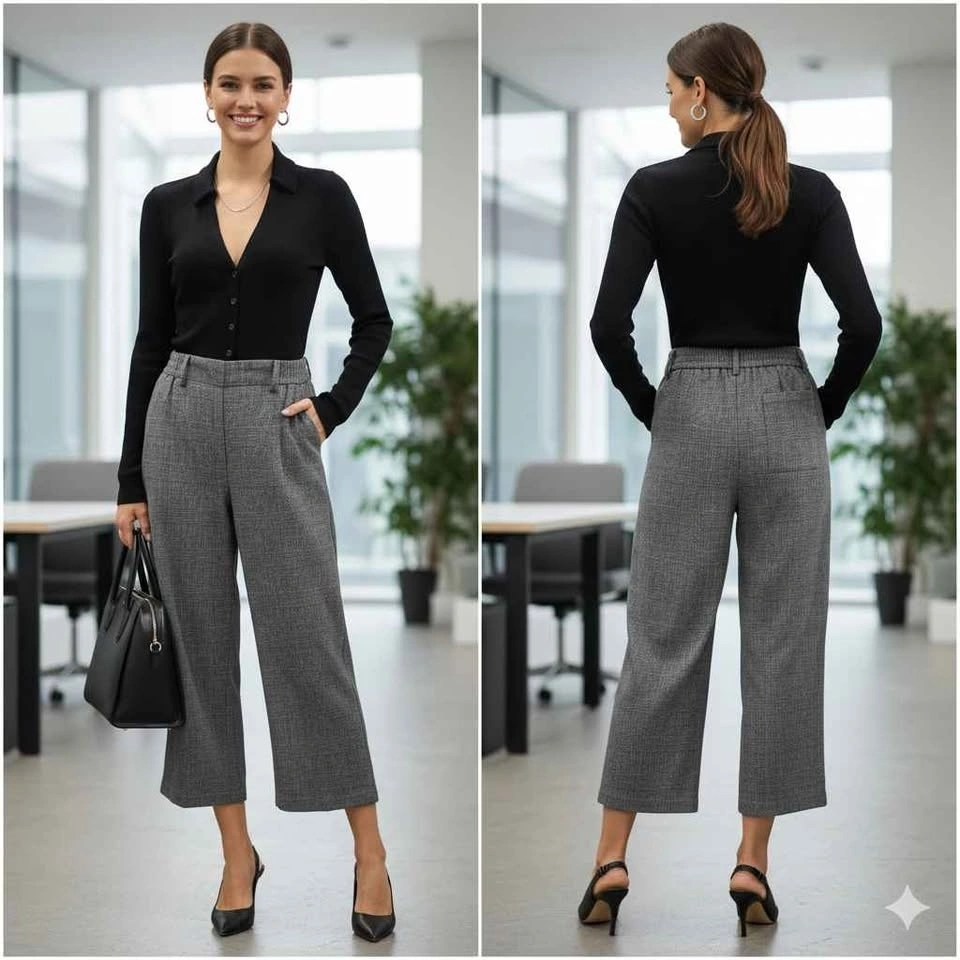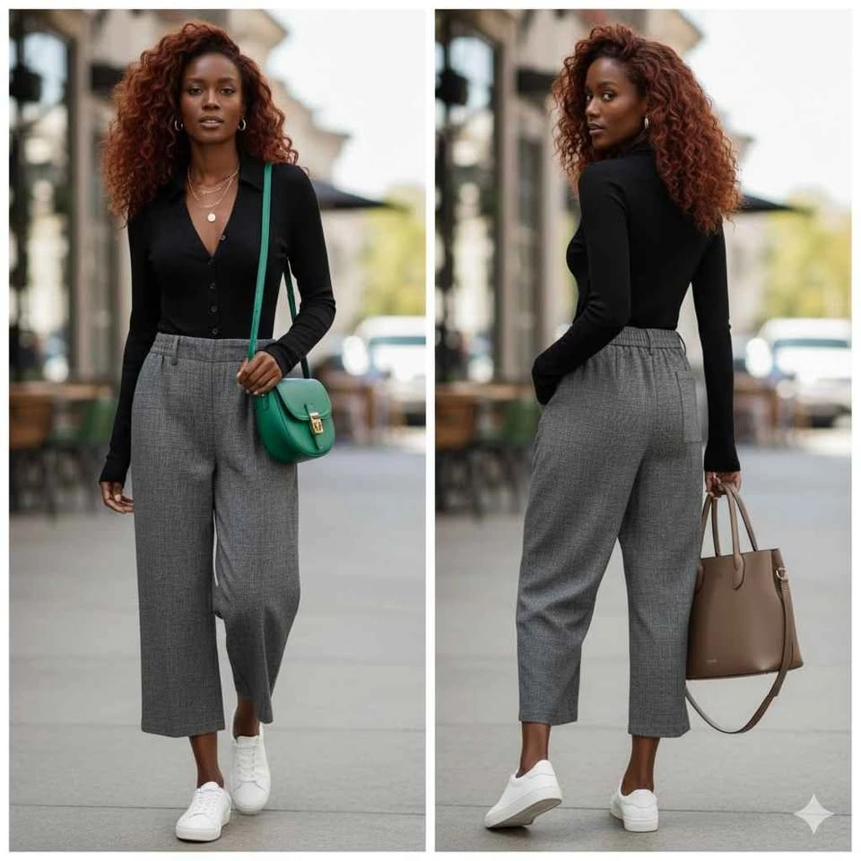 Design: High-rise fit, side slant pockets, and belt loops. Cropped or ankle length, depending on your height.