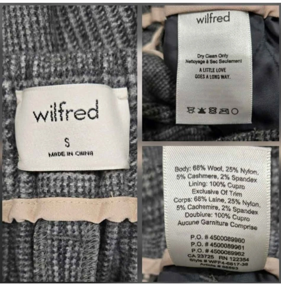 Wilfred Aritzia Allant Pant Wool Cashmere Grey Plaid Wide Leg Trouser